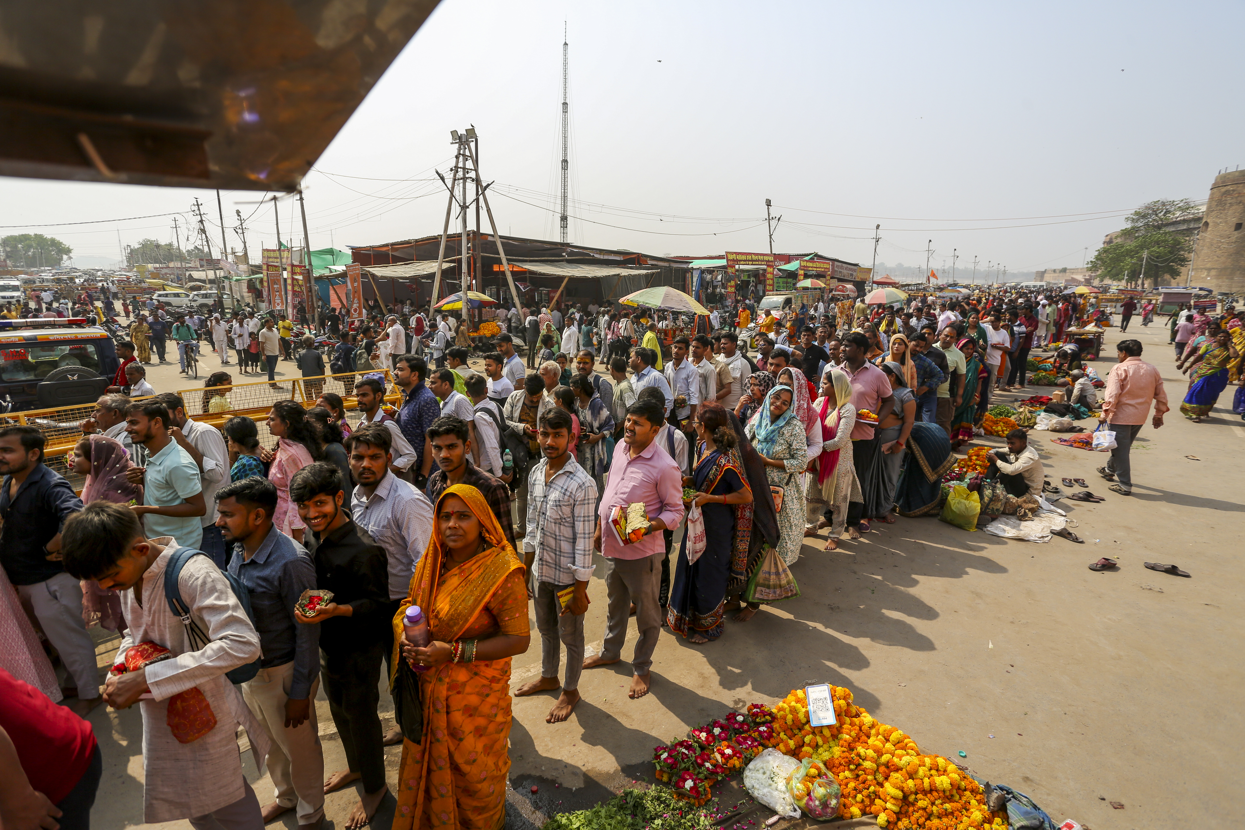Prayagraj: People gather to offer prayers on the occasion of Hanuman Jayanti at the Bade Hanuman ji temple, in Prayagraj, Saturday, April 12, 2025. (PTI Photo)(PTI04_12_2025_000023B) *** Local Caption ***