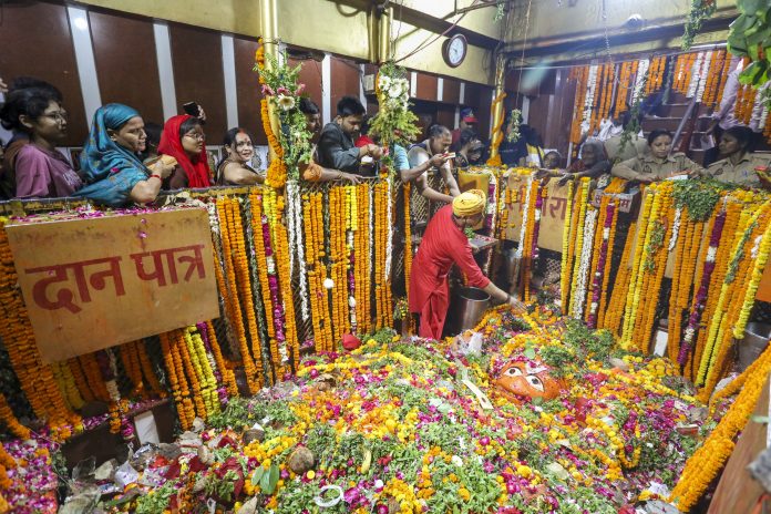 Prayagraj: People offer prayers on the occasion of Hanuman Jayanti at the Bade Hanuman ji temple, in Prayagraj, Saturday, April 12, 2025. (PTI Photo)(PTI04_12_2025_000019B) *** Local Caption ***