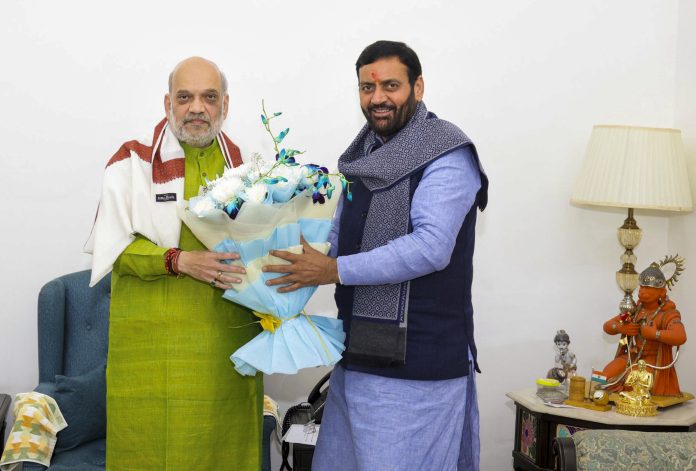 **EDS: THIRD PARTY IMAGE** In this image posted on Feb. 22, 2026, Union Home Minister Amit Shah meets Haryana Chief Minister Nayab Singh Saini, in New Delhi. (@HMOIndia/X via PTI Photo)(PTI02_22_2026_000432B) *** Local Caption ***
