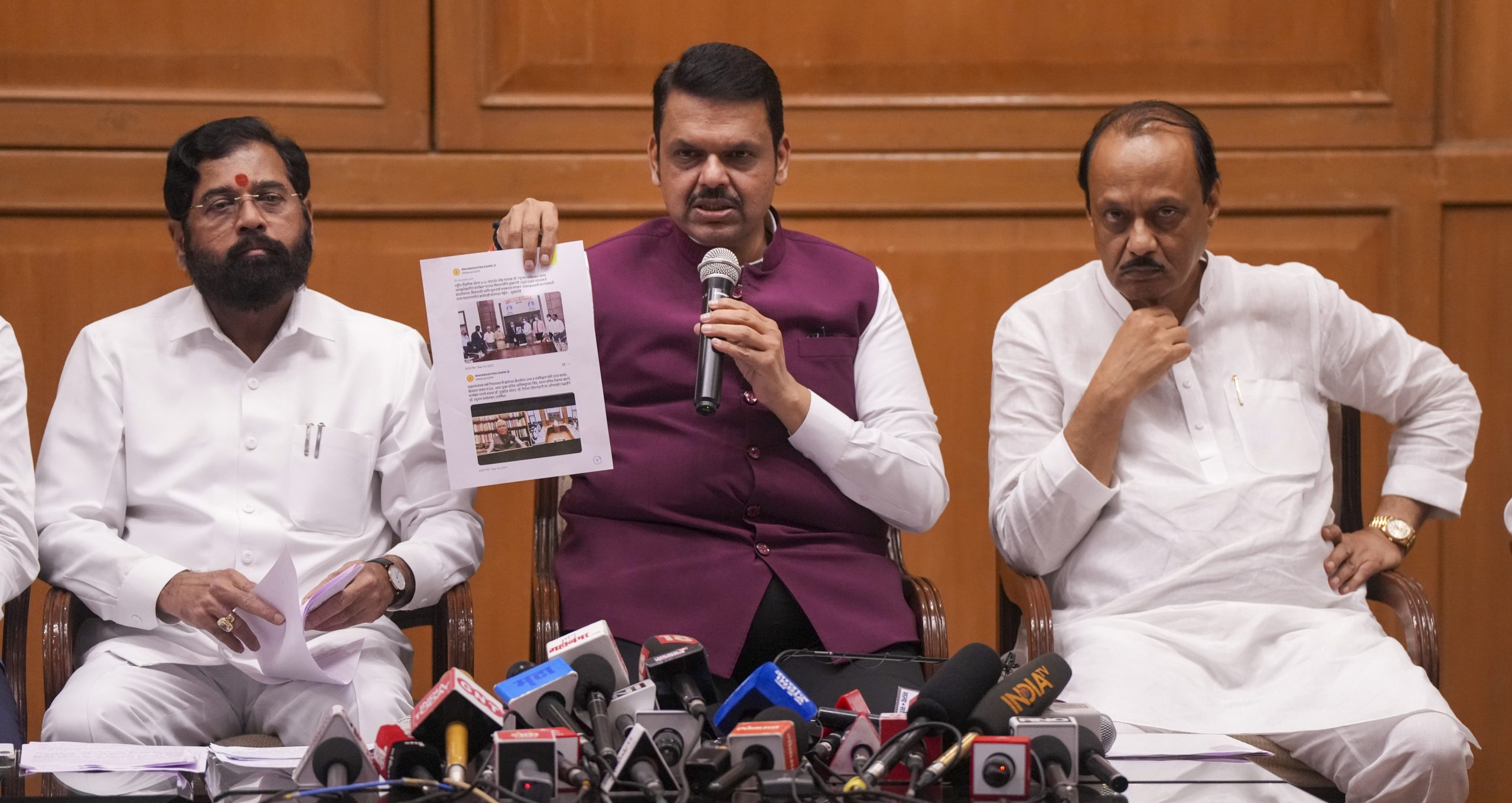 Deputy Chief Ministers Ajit Pawar and Eknath Shinde were also present at the presser.