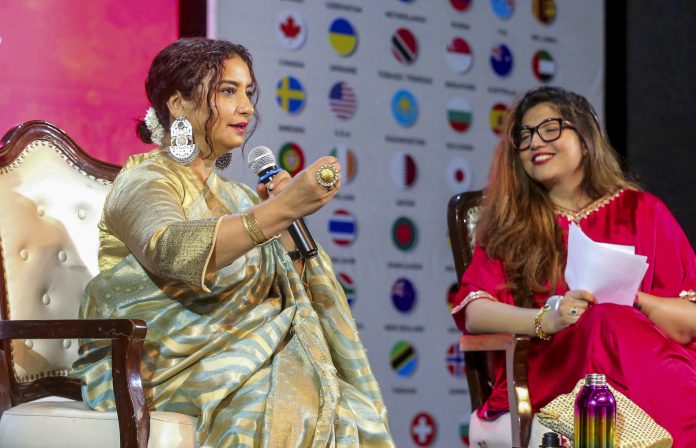 Bhopal: Bollywood actor Divya Dutta speaks in a talk show on 'The Journey of Cinema' during the "Vishwarang" 2025 - Tagore International Literature and Arts Festival, in Bhopal, Friday, Nov. 28, 2025. (PTI Photo)(PTI11_28_2025_000450B)