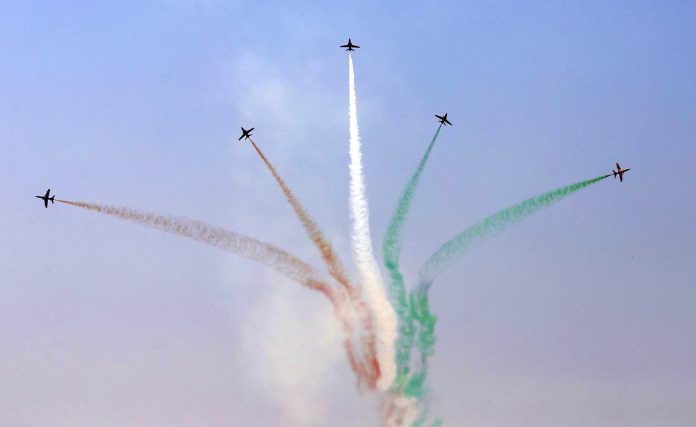In the composite phase, all nine aircraft flew in close formation, while the synchronisation phase featured smaller formations, as they performed dynamic low-level manoeuvres – some as low as 100 feet, officials said.