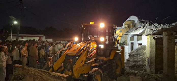 Budaun: Rescue operation underway after an illegal firecracker manufacturing unit, triggered by a fire, collapsed, in Budaun district, Uttar Pradesh, Friday, April 11, 2025. (PTI Photo) (PTI04_11_2025_000628B) *** Local Caption *** DES84