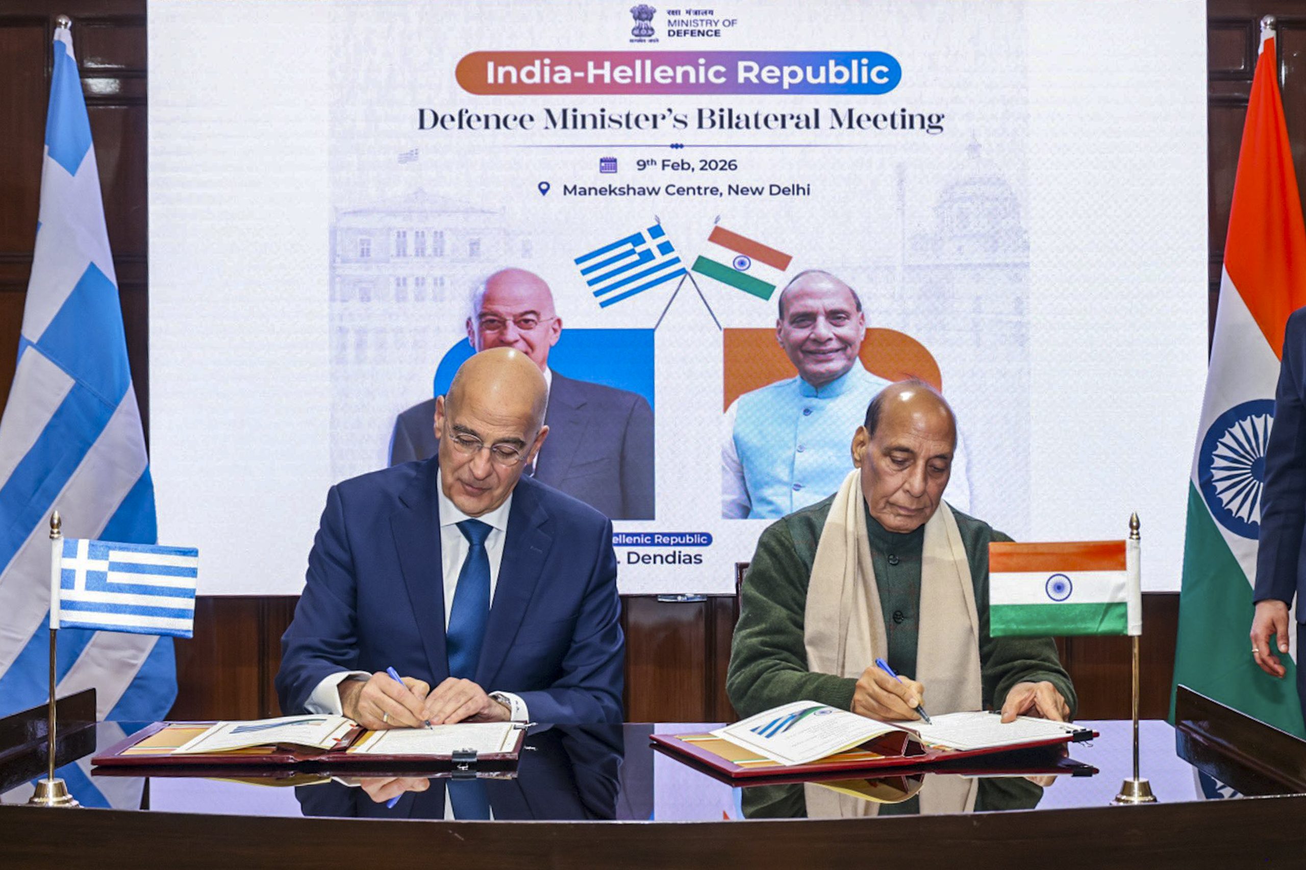 The agreement was inked after Defence Minister Rajnath Singh held bilateral talks with Minister of National Defence of the Hellenic Republic, Nikolaos-Georgios Dendias, at the Manekshaw Centre here.