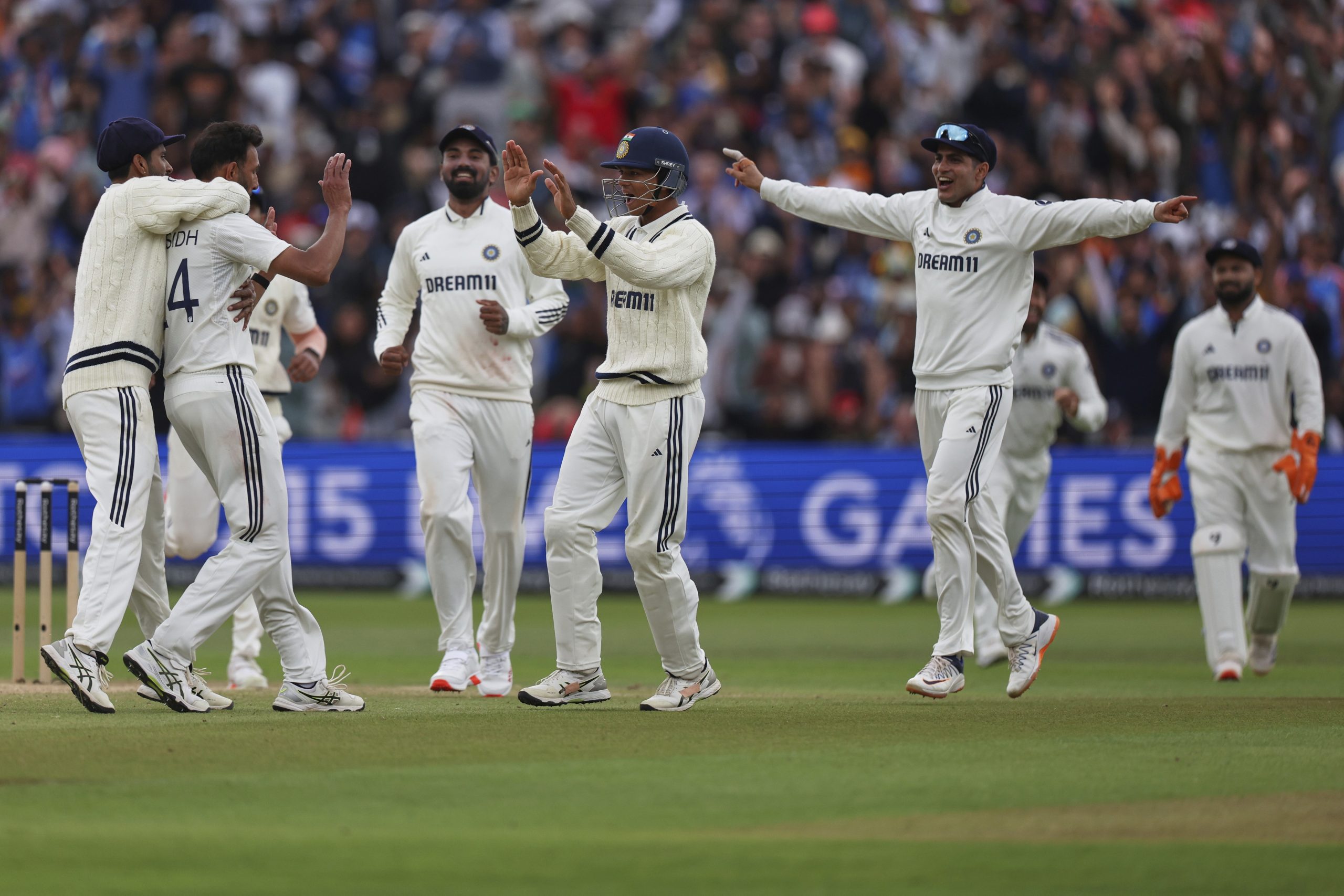 Pacer Akash Deep (6/99) picked his maiden five-for in Tests. He rocked England early striking twice in a rain-delayed morning session.