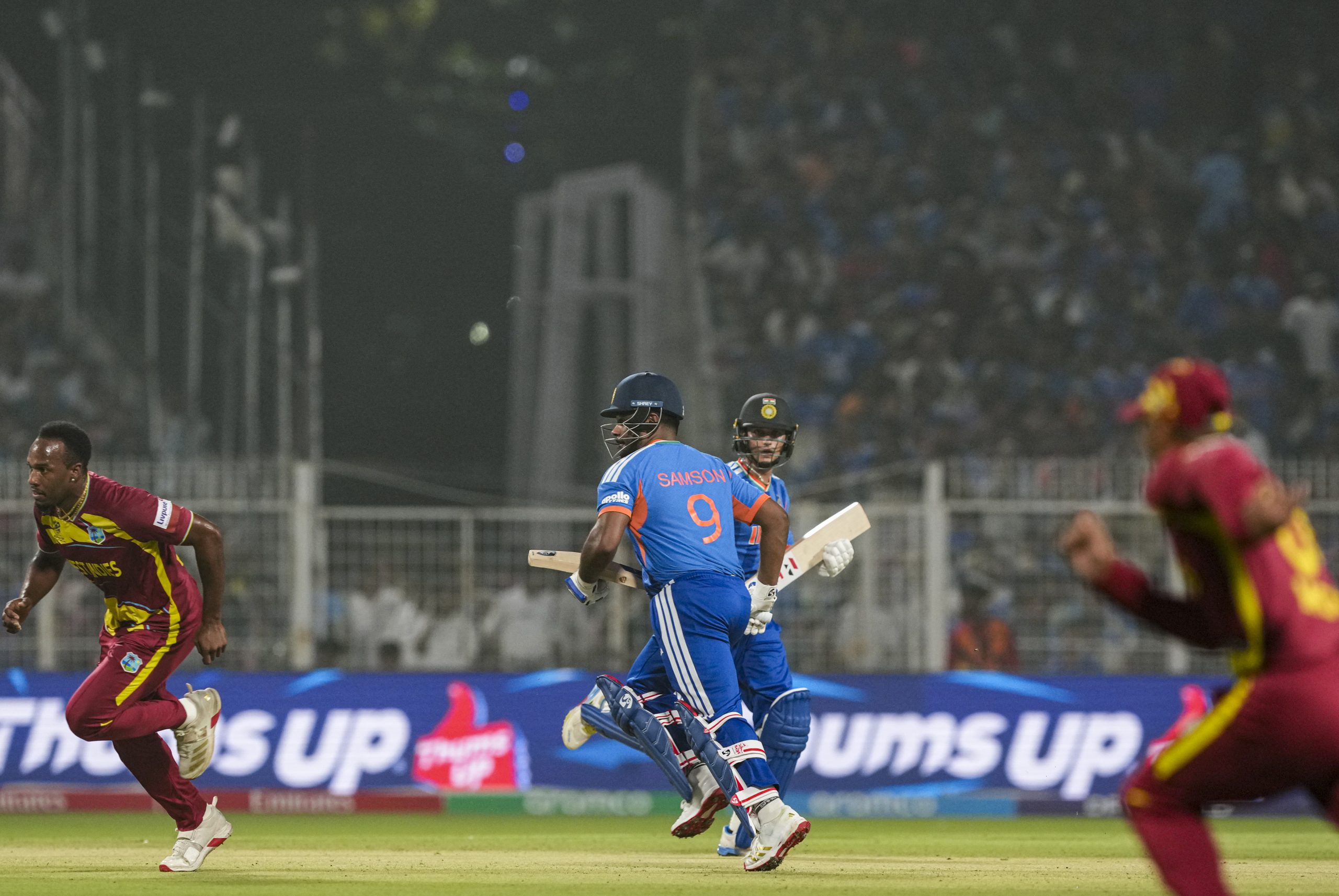 Samson (20) was at the crease with India skipper Suryakumar Yadav (1).