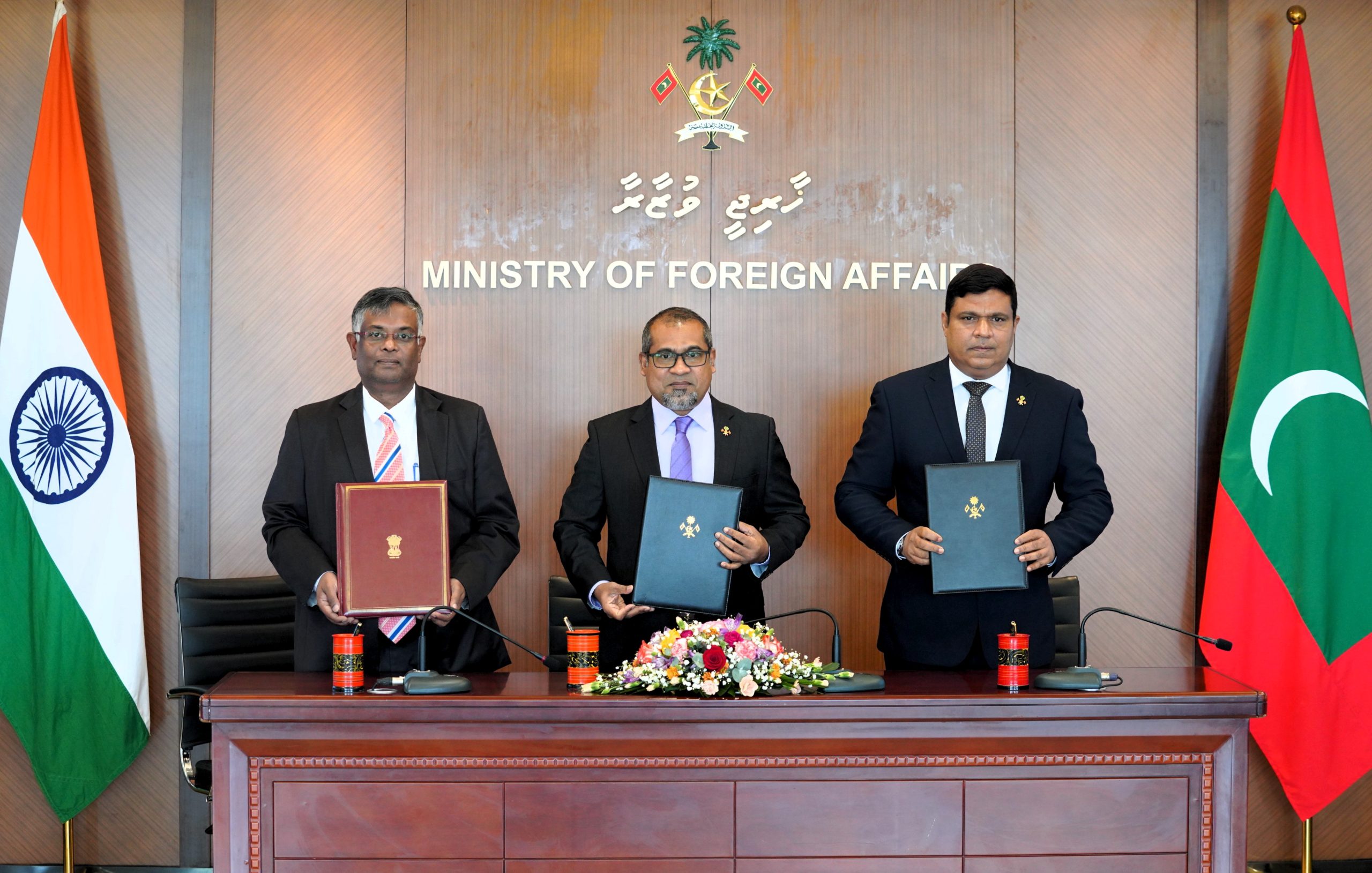 The MoUs were signed by Abdulla Khaleel, Minister of Foreign Affairs, on behalf of the Maldivian government, and G Balasubramanian, the High Commissioner of India to the Maldives. Mohamed Ameen, Minister of Transport and Civil Aviation, signed on behalf of the implementing agency.
