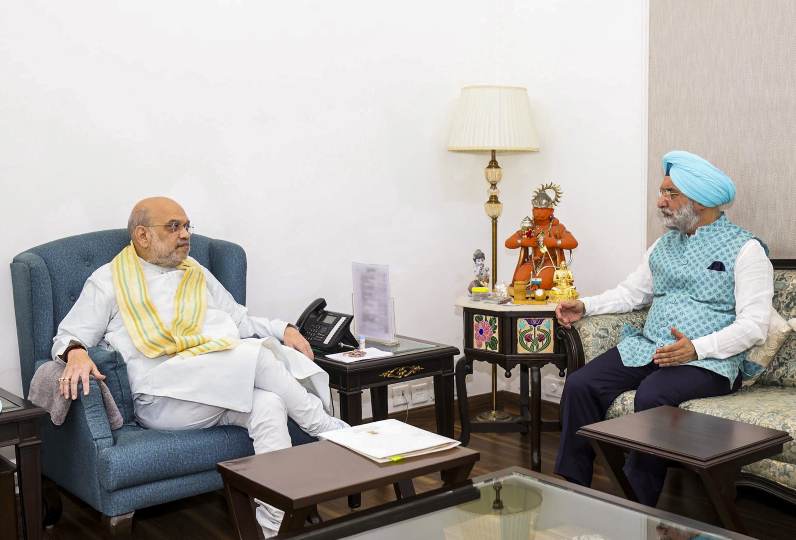 **EDS: THIRD PARTY IMAGE** In this image posted on March 27, 2026, Union Home Minister Amit Shah, left, interacts with Delhi LG Taranjit Singh Sandhu, in New Delhi. (@HMOIndia/X via PTI Photo)(PTI03_27_2026_000223B)