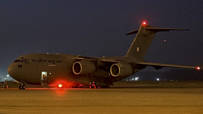 **EDS: THIRD PARTY** Mandalay: In this image posted by @DrSJaishankar via X on April 6, 2025, the Indian Air Force’s C-17 plane with humanitarian aid departs for Mandalay in the earthquake-hit Myanmar. (@DrSJaishankar vis PTI Photo)(PTI04_06_2025_000069B)
