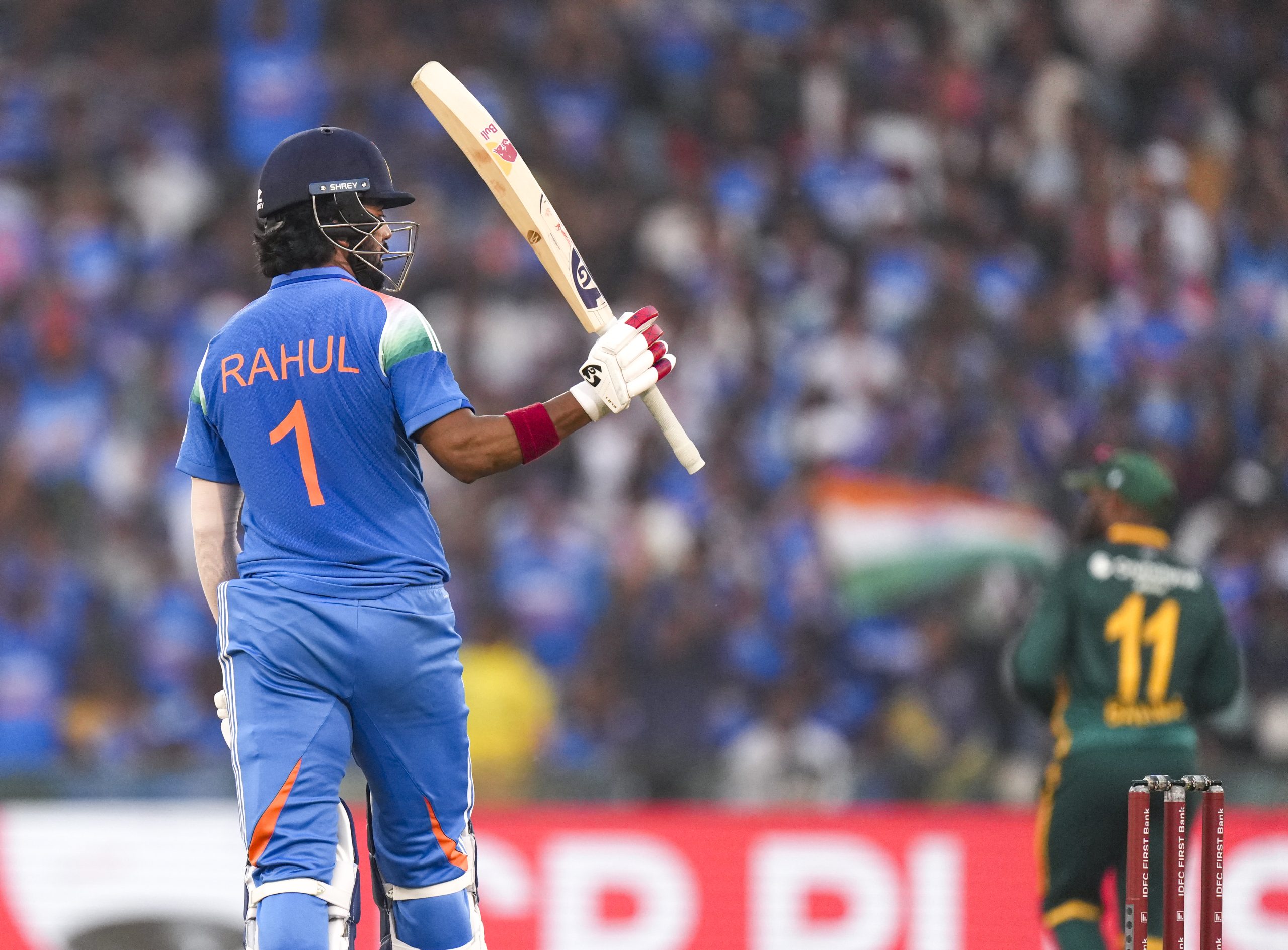Raipur: India's captain KL Rahul celebrates his half century during the second ODI cricket match of a series between India and South Africa, at Shaheed Veer Narayan Singh International Stadium, in Raipur, Chhattisgarh, Wednesday, Dec. 3, 2025. (PTI Photo/Kunal Patil) (PTI12_03_2025_000437B)