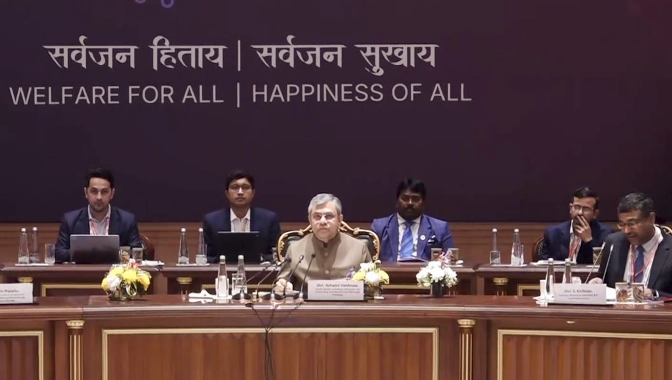 **EDS: SCREENGRAB VIA PTI VIDEOS** New Delhi: Union Minister for Electronics and Information Technology Ashwini Vaishnaw speaks during the India AI Impact Summit 2026, in New Delhi, Wednesday, Feb. 18, 2026. (PTI Photo)(PTI02_18_2026_000075B)