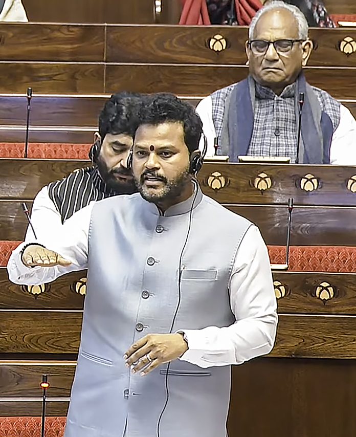 **EDS: THIRD PARTY IMAGE; SCREENGRAB VIA SANSAD TV** New Delhi: Union Minister for Civil Aviation K Rammohan Naidu speaks in the Rajya Sabha regarding the IndiGo flight crisis, during the Winter session of Parliament, in New Delhi, Monday, Dec. 8, 2025. (Sansad TV via PTI Photo)(PTI12_08_2025_000211B)