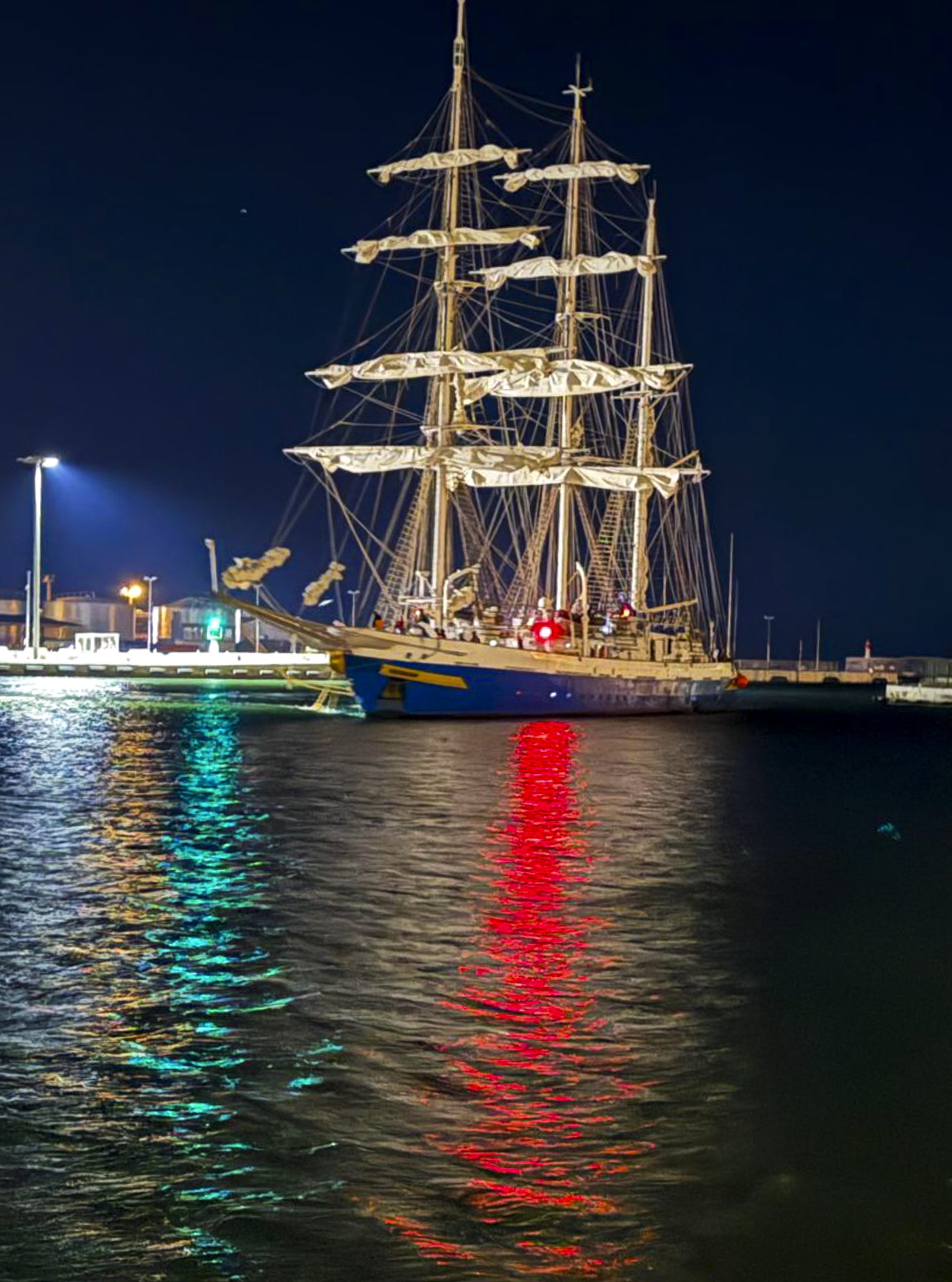 **EDS: THIRD PARTY IMAGE** In this image received on March 27, 2026, Indian Navy�s sail training ship, INS Sudarshini, arrived at the port city of S�te, as part of the ongoing landmark transoceanic expedition Lokayan-26. (Defence PRO via PTI Photo) (PTI03_27_2026_000320B)