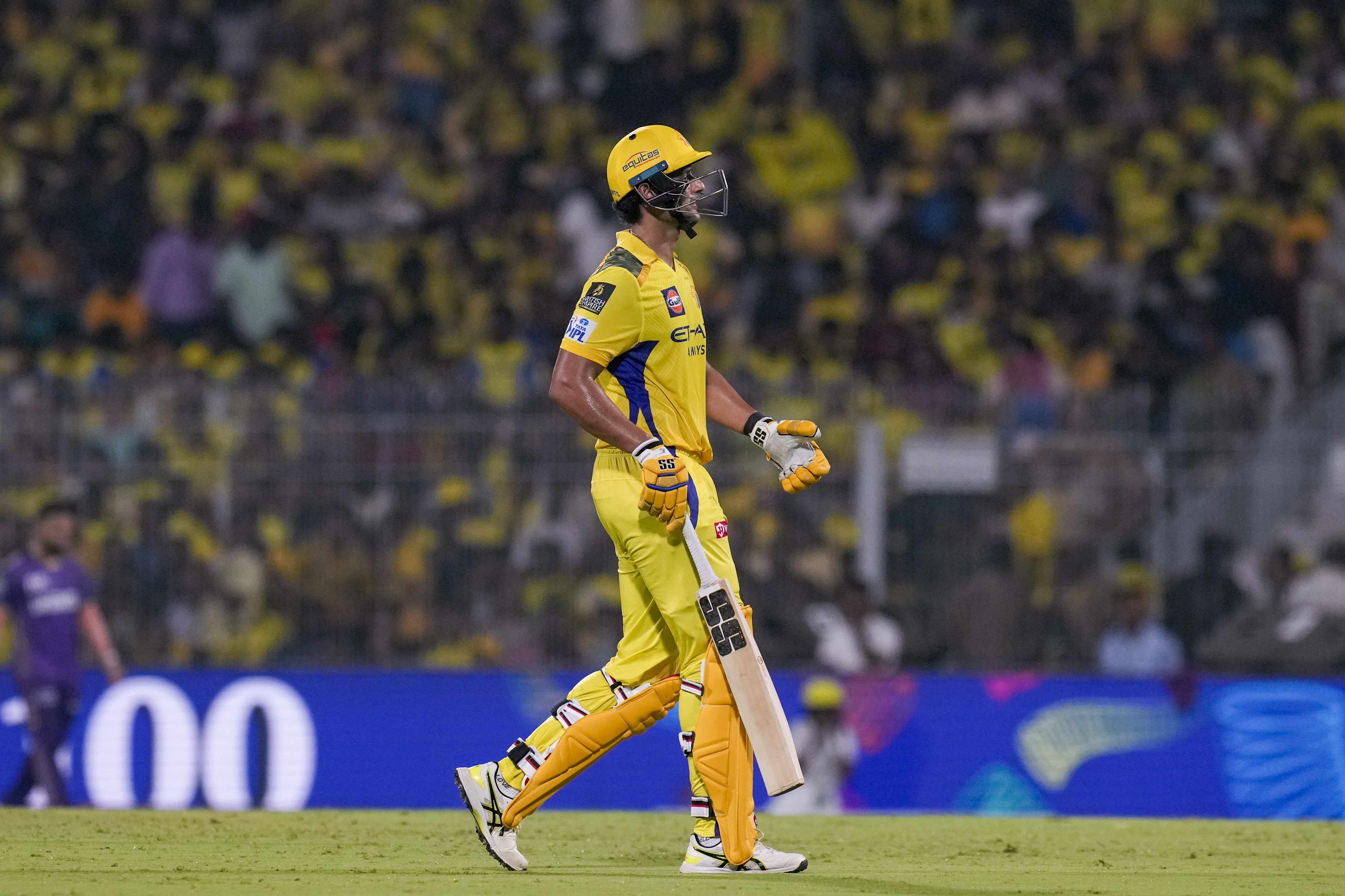 Chennai: Chennai Super Kings� Shivam Dube returns to pavilion after the end of the first innings during an Indian Premier League (IPL) 2025 T20 cricket match between Chennai Super Kings and Kolkata Knight Riders, at the MA Chidambaram Stadium, in Chennai, Friday, April 11, 2025. (PTI Photo/R Senthilkumar) (PTI04_11_2025_000552B) *** Local Caption ***