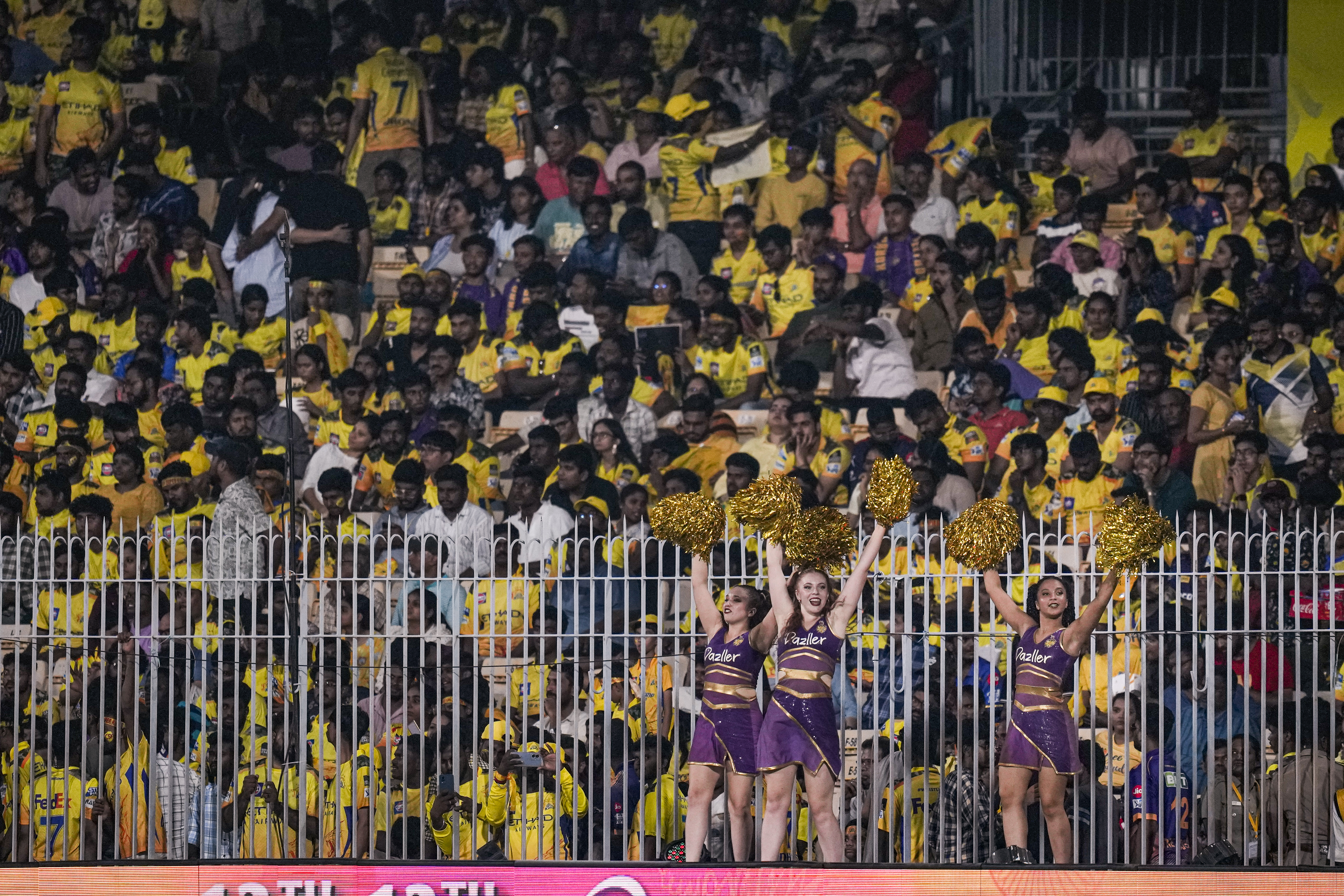 Chennai: Kolkata Knight Riders� cheerleaders perform during an Indian Premier League (IPL) 2025 T20 cricket match between Chennai Super Kings and Kolkata Knight Riders, at the MA Chidambaram Stadium, in Chennai, Friday, April 11, 2025. (PTI Photo/R Senthilkumar) (PTI04_11_2025_000615B) *** Local Caption ***