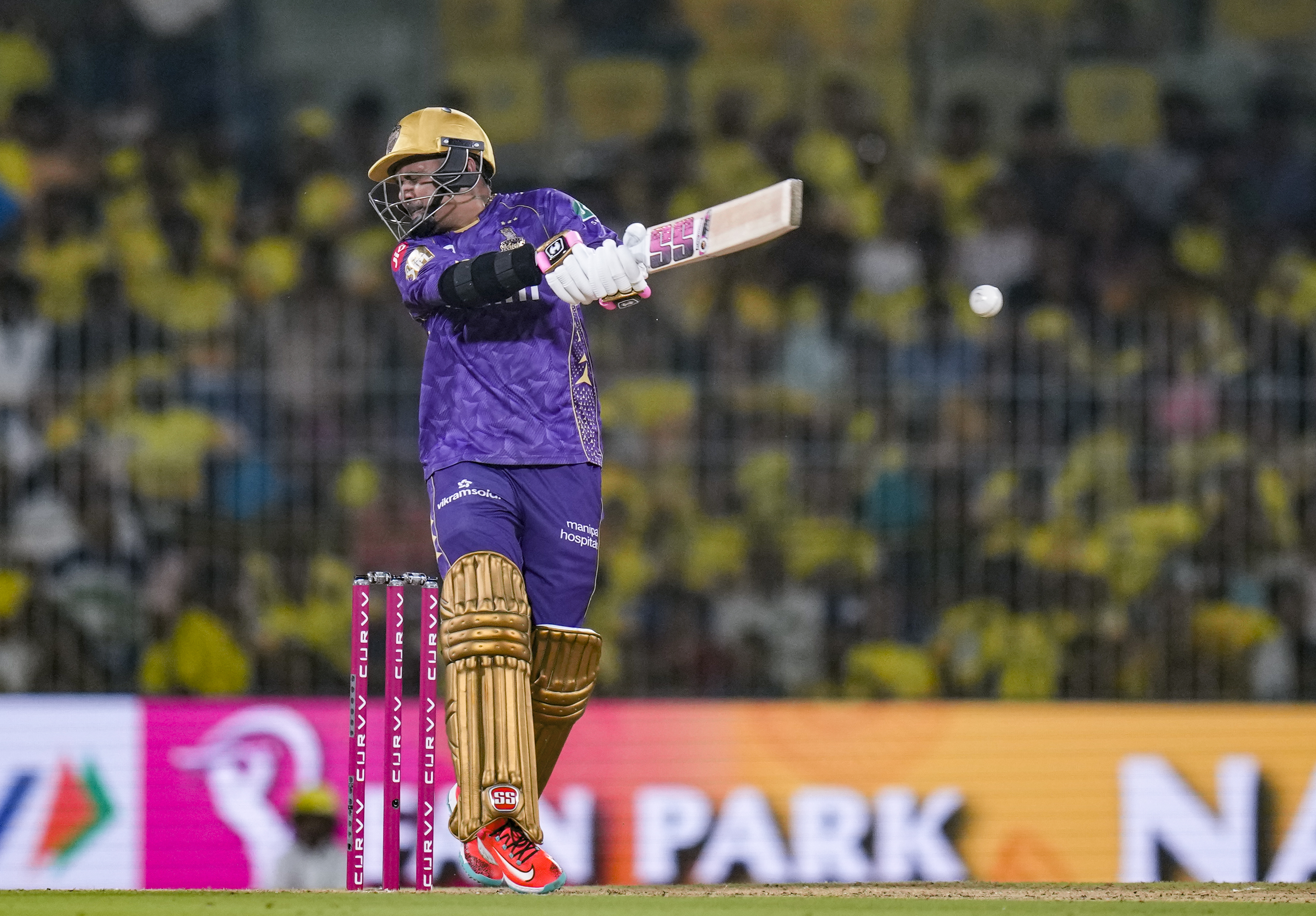 Chennai: Kolkata Knight Riders’ Sunil Narine plays a shot during an Indian Premier League (IPL) 2025 T20 cricket match between Chennai Super Kings and Kolkata Knight Riders, at the MA Chidambaram Stadium, in Chennai, Friday, April 11, 2025. (PTI Photo/R Senthilkumar) (PTI04_11_2025_000588B) *** Local Caption ***