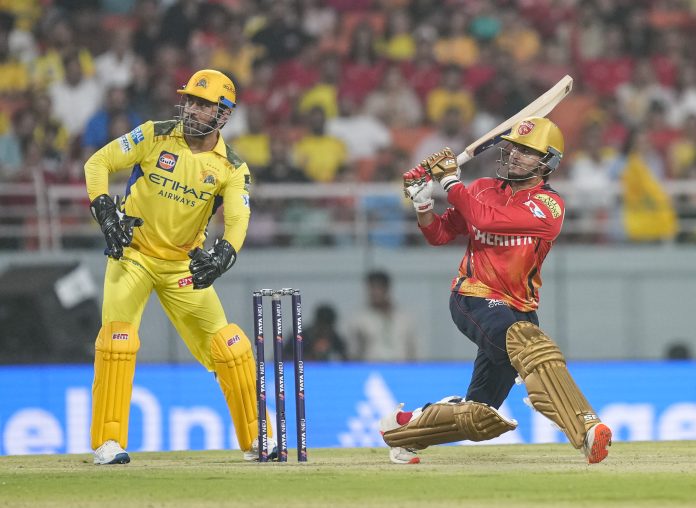 New Chandigarh: Punjab Kings’ Nehal Wadhera plays a shot during an Indian Premier League (IPL) 2025 cricket match between Punjab Kings and Chennai Super Kings, in New Chandigarh, Tuesday, April 8, 2025. (PTI Photo/Ravi Choudhary)(PTI04_08_2025_000517B)