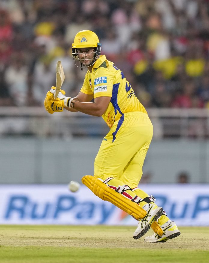 New Chandigarh: Chennai Super Kings’ Shivam Dube plays a shot during an Indian Premier League (IPL) 2025 cricket match between Punjab Kings and Chennai Super Kings, in New Chandigarh, Tuesday, April 8, 2025. (PTI Photo/Ravi Choudhary) (PTI04_08_2025_000638B)