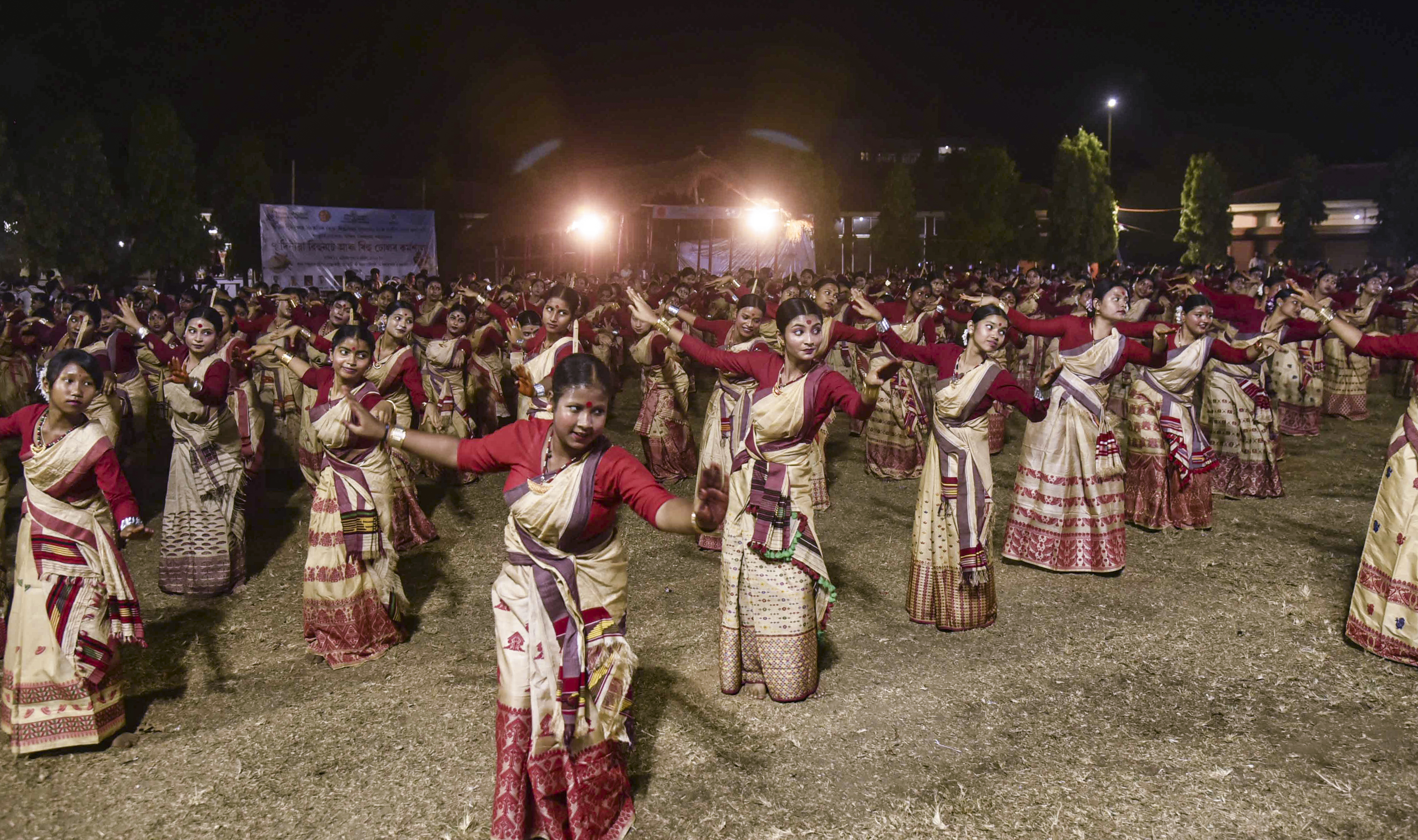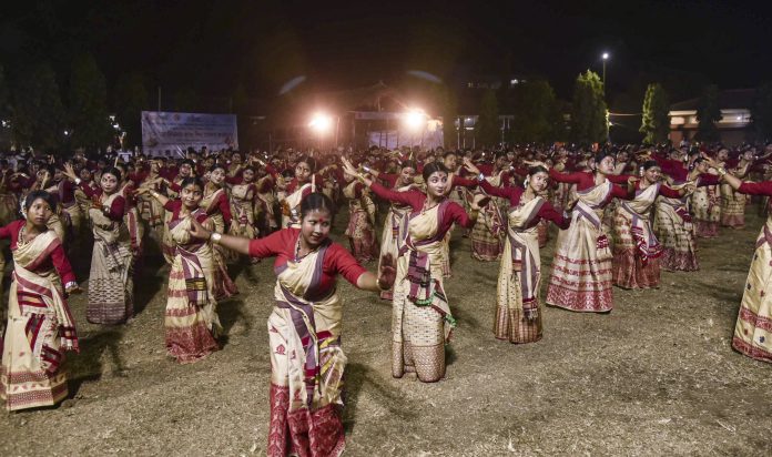 Guwahati: Artists take part in a Bihu dance workshop, in Guwahati, Tuesday, April 8, 2025. (PTI Photo)(PTI04_08_2025_000634B)