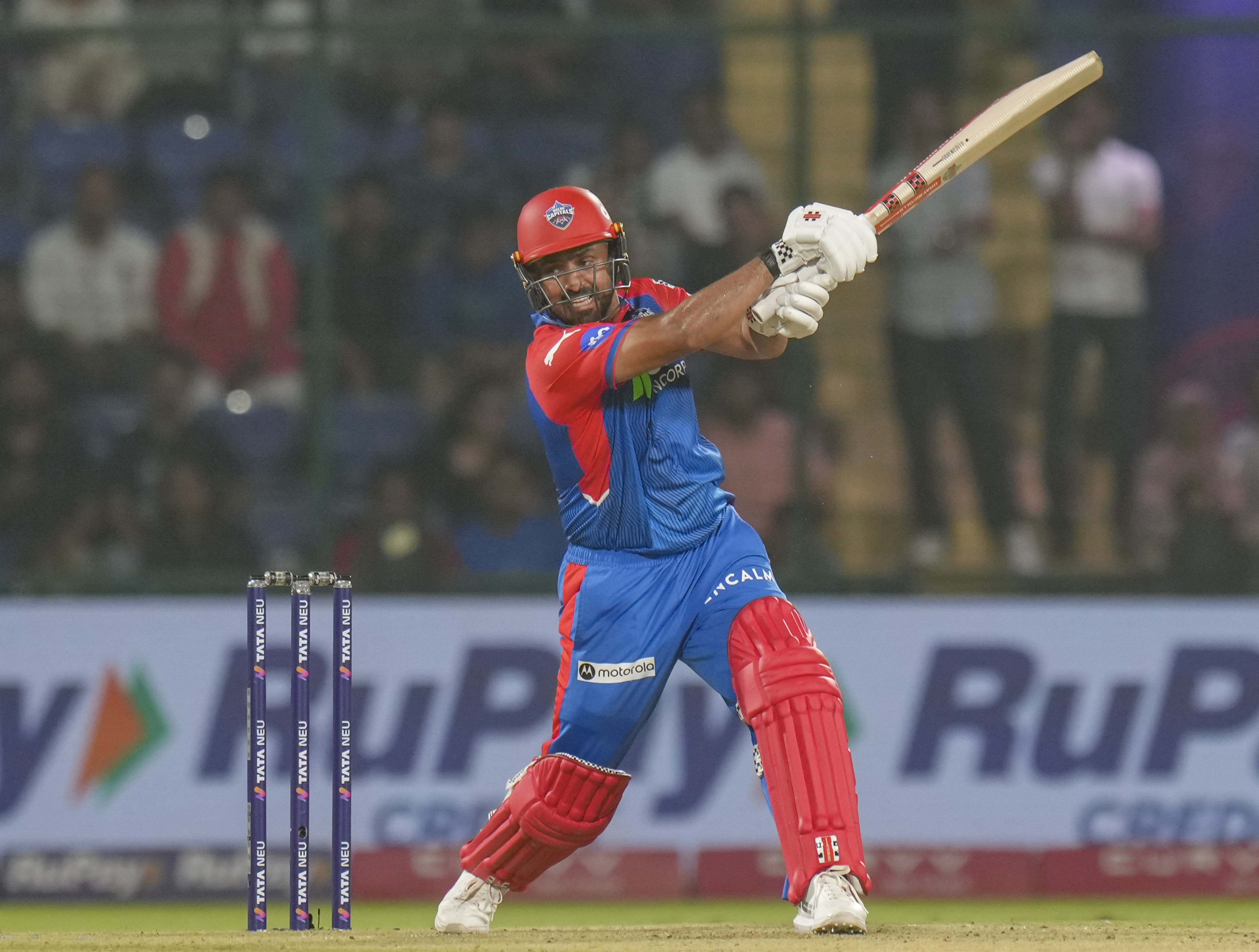 New Delhi: Delhi Capitals’ Karun Nair plays a shot during an Indian Premier League (IPL) 2025 T20 cricket match between Delhi Capitals and Mumbai Indians, at the Arun Jaitley Stadium, in New Delhi, Sunday, April 13, 2025. (PTI Photo/Shahbaz Khan) (PTI04_13_2025_000493B)