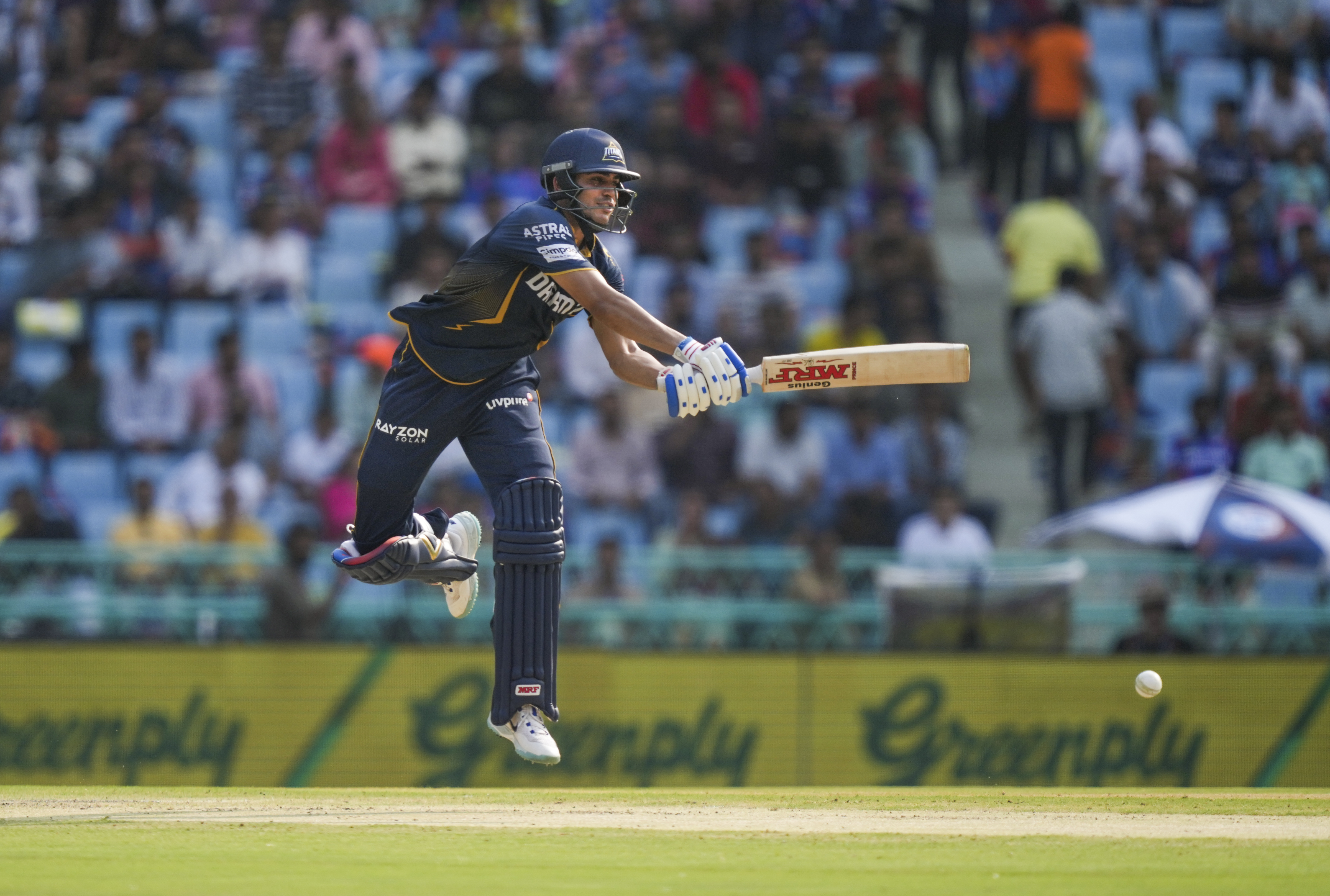 Lucknow: Gujarat Titans’ batter Shubman Gill plays a shot during the Indian Premier League (IPL) 2025 cricket match between Lucknow Super Giants and Gujarat Titans, at Bharat Ratna Shri Atal Bihari Vajpayee Ekana Cricket Stadium, in Lucknow, Saturday, April 12, 2025. (PTI Photo/Atul Yadav)(PTI04_12_2025_000160B)