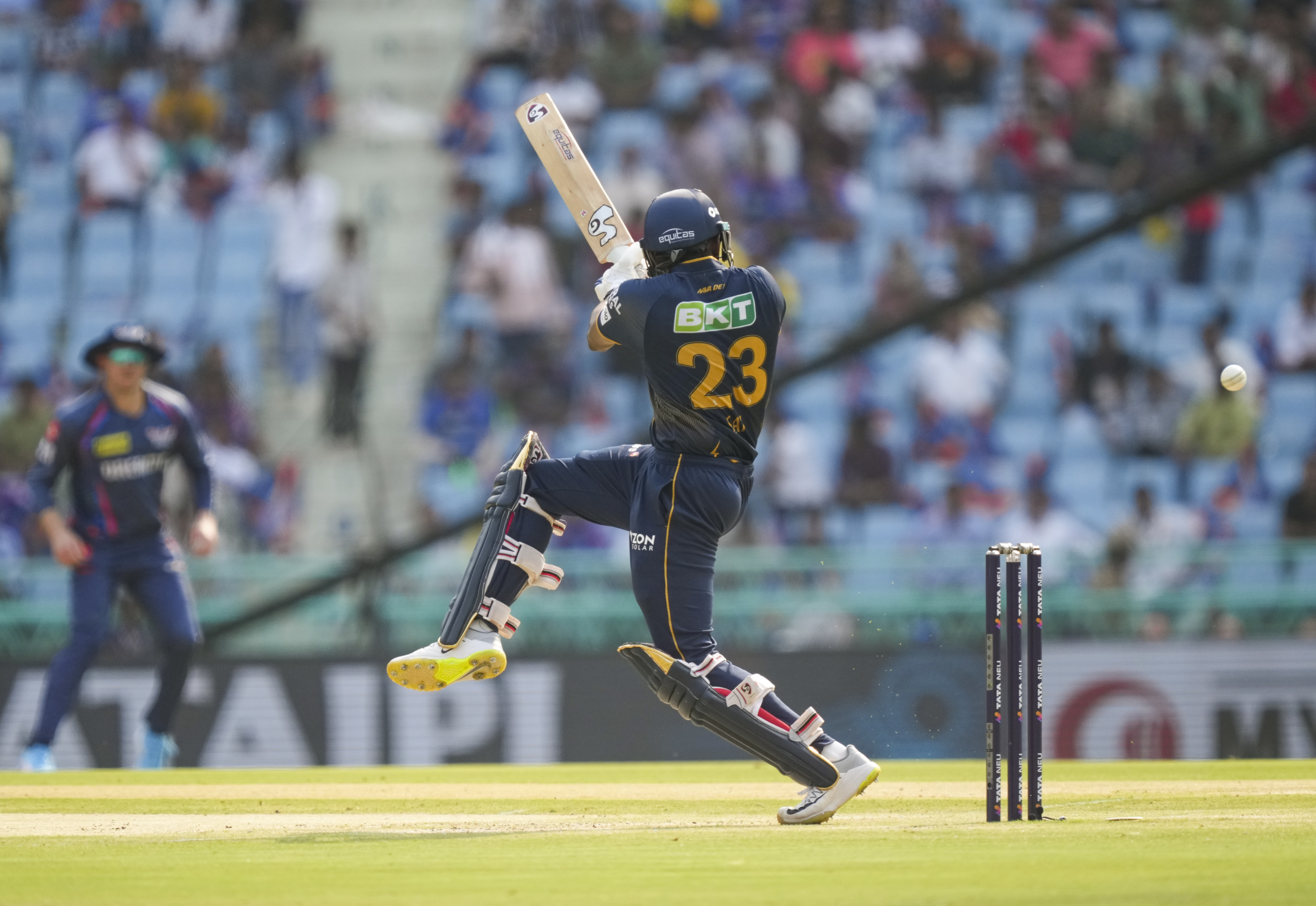Lucknow: Gujarat Titans’ batter Sai Sudharsan plays a shot during the Indian Premier League (IPL) 2025 cricket match between Lucknow Super Giants and Gujarat Titans, at Bharat Ratna Shri Atal Bihari Vajpayee Ekana Cricket Stadium, in Lucknow, Saturday, April 12, 2025. (PTI Photo/Atul Yadav)(PTI04_12_2025_000156B)