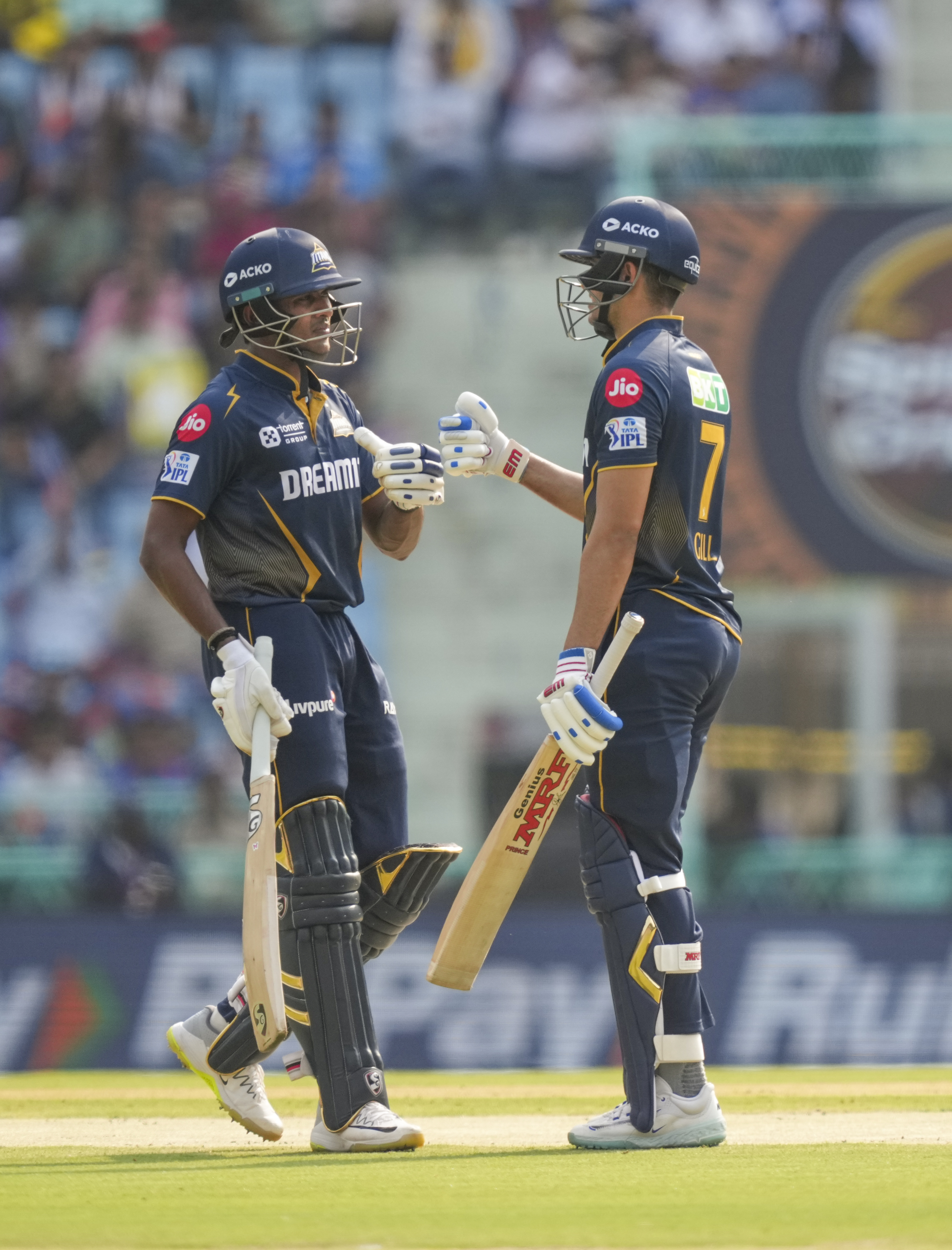 Lucknow: Gujarat Titans’ batters Sai Sudharsan and Shubman Gill during the Indian Premier League (IPL) 2025 cricket match between Lucknow Super Giants and Gujarat Titans, at Bharat Ratna Shri Atal Bihari Vajpayee Ekana Cricket Stadium, in Lucknow, Saturday, April 12, 2025. (PTI Photo/Atul Yadav)(PTI04_12_2025_000152B)