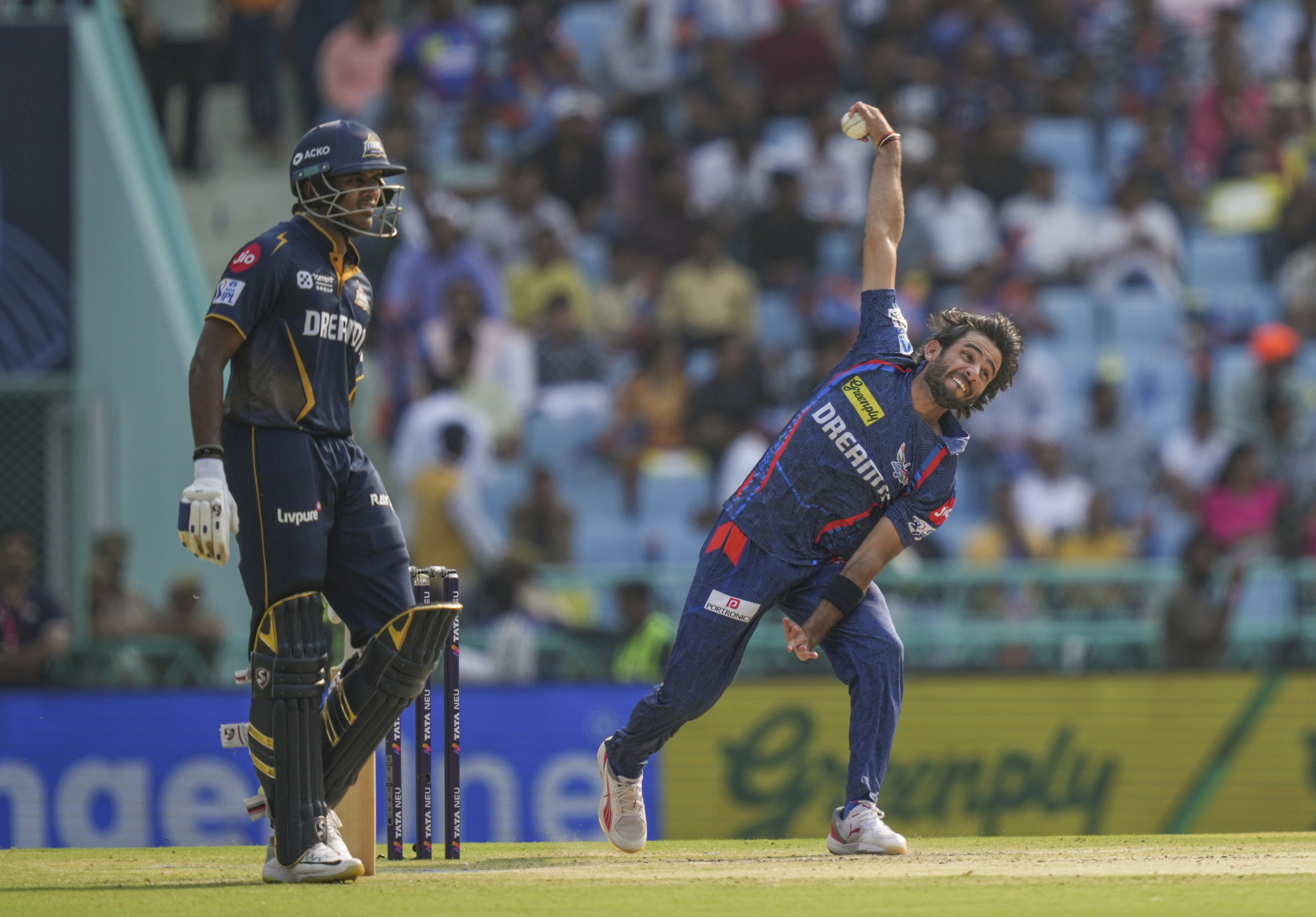 Lucknow: Lucknow Super Giants’ Ravi Bishnoi bowls during the Indian Premier League (IPL) 2025 cricket match between Lucknow Super Giants and Gujarat Titans, at Bharat Ratna Shri Atal Bihari Vajpayee Ekana Cricket Stadium, in Lucknow, Saturday, April 12, 2025. (PTI Photo/Atul Yadav)(PTI04_12_2025_000169B)