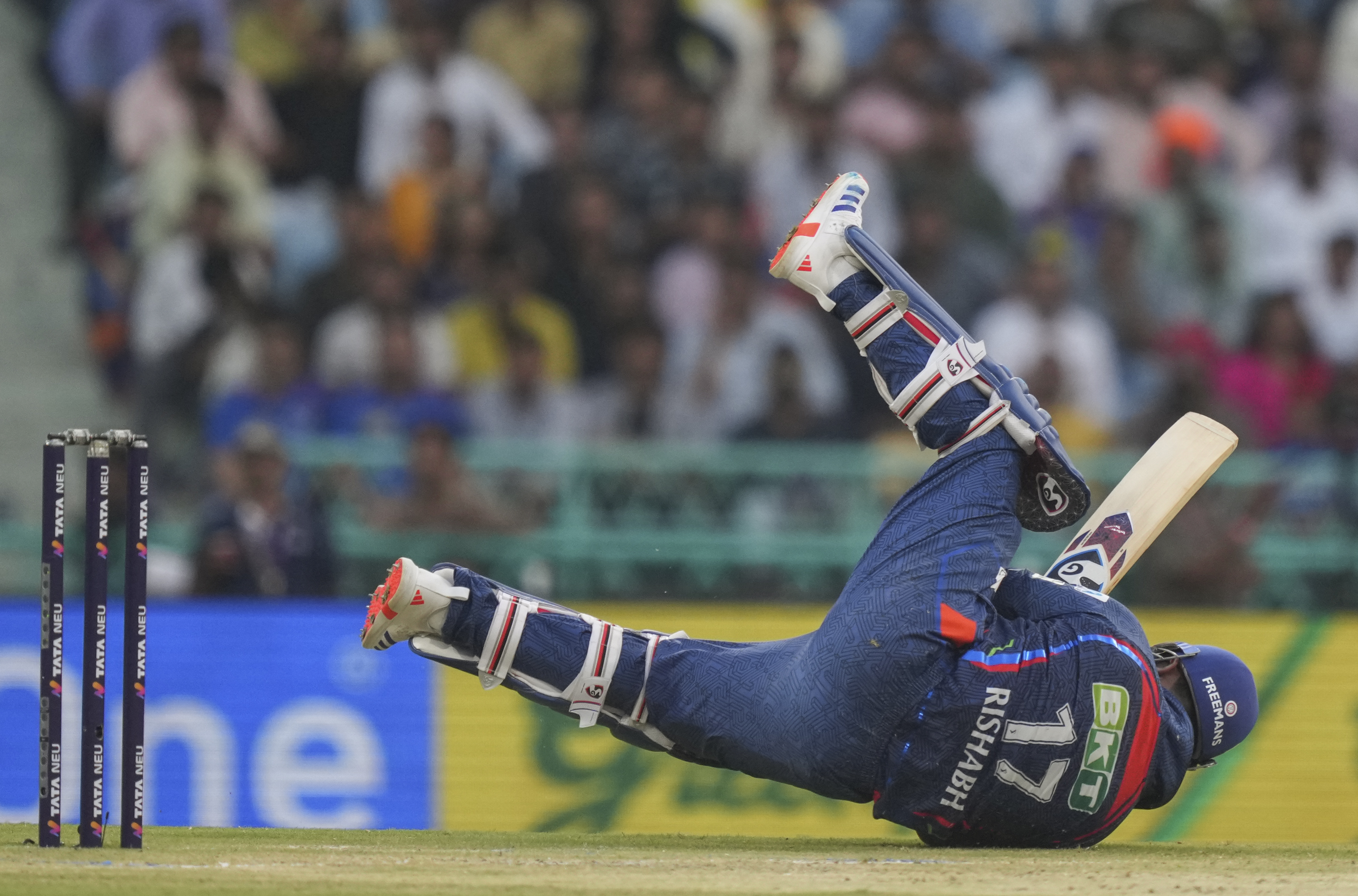 Lucknow: Lucknow Super Giants’ batter Rishabh Pant falls down as he plays a shot during the Indian Premier League (IPL) 2025 match between Lucknow Super Giants and Gujarat Titans, at Bharat Ratna Shri Atal Bihari Vajpayee Ekana Cricket Stadium, in Lucknow, Saturday, April 12, 2025. (PTI Photo/Atul Yadav)(PTI04_12_2025_000307B)