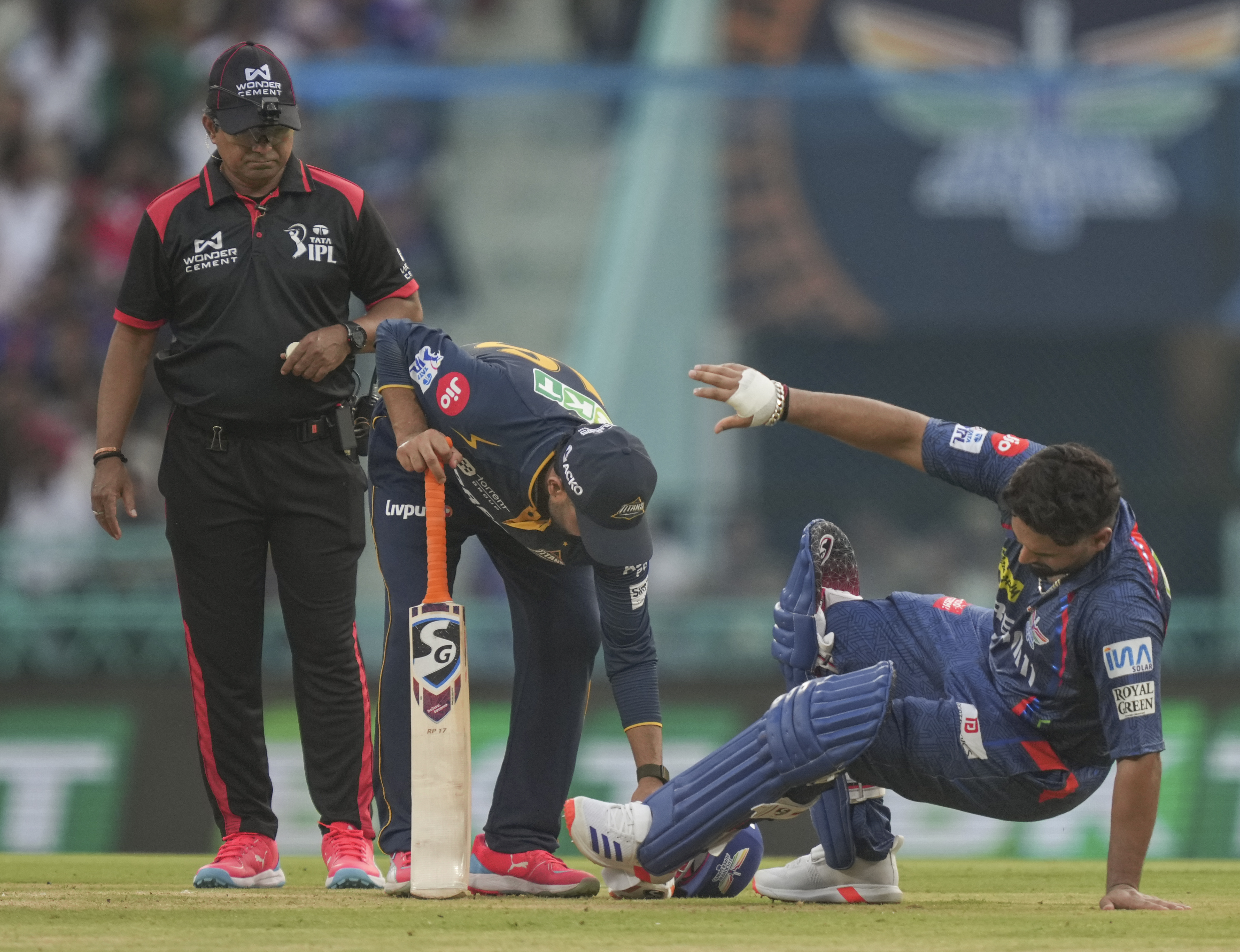 Lucknow: Lucknow Super Giants’ batter Rishabh Pant after he was hit by the ball during the Indian Premier League (IPL) 2025 match between Lucknow Super Giants and Gujarat Titans, at Bharat Ratna Shri Atal Bihari Vajpayee Ekana Cricket Stadium, in Lucknow, Saturday, April 12, 2025. (PTI Photo/Atul Yadav)(PTI04_12_2025_000303B)