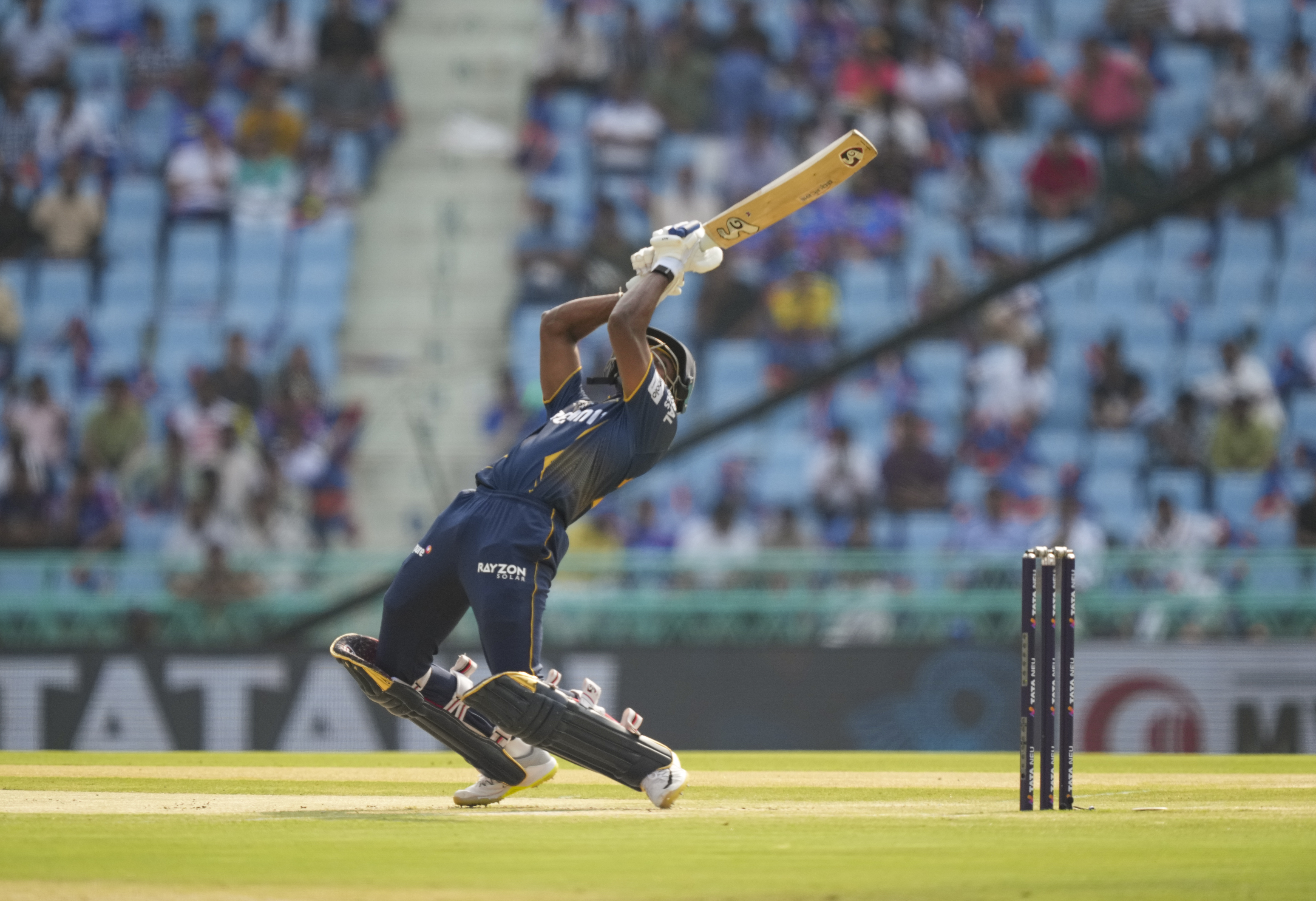 Lucknow: Gujarat Titans’ batter Sai Sudharsan plays a shot during the Indian Premier League (IPL) 2025 cricket match between Lucknow Super Giants and Gujarat Titans, at Bharat Ratna Shri Atal Bihari Vajpayee Ekana Cricket Stadium, in Lucknow, Saturday, April 12, 2025. (PTI Photo/Atul Yadav)(PTI04_12_2025_000147B)