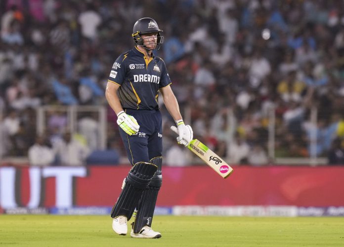 Ahmedabad: Gujarat Titans� Jos Buttler returns to pavilion after being dismissed by Rajasthan Royals’ Maheesh Theekshana during an Indian Premier League (IPL) 2025 T20 cricket match between Gujarat Titans and Rajasthan Royals, at the Narendra Modi Stadium, in Ahmedabad, Wednesday, April 9, 2025. (PTI Photo/Arun Sharma) (PTI04_09_2025_000451B)