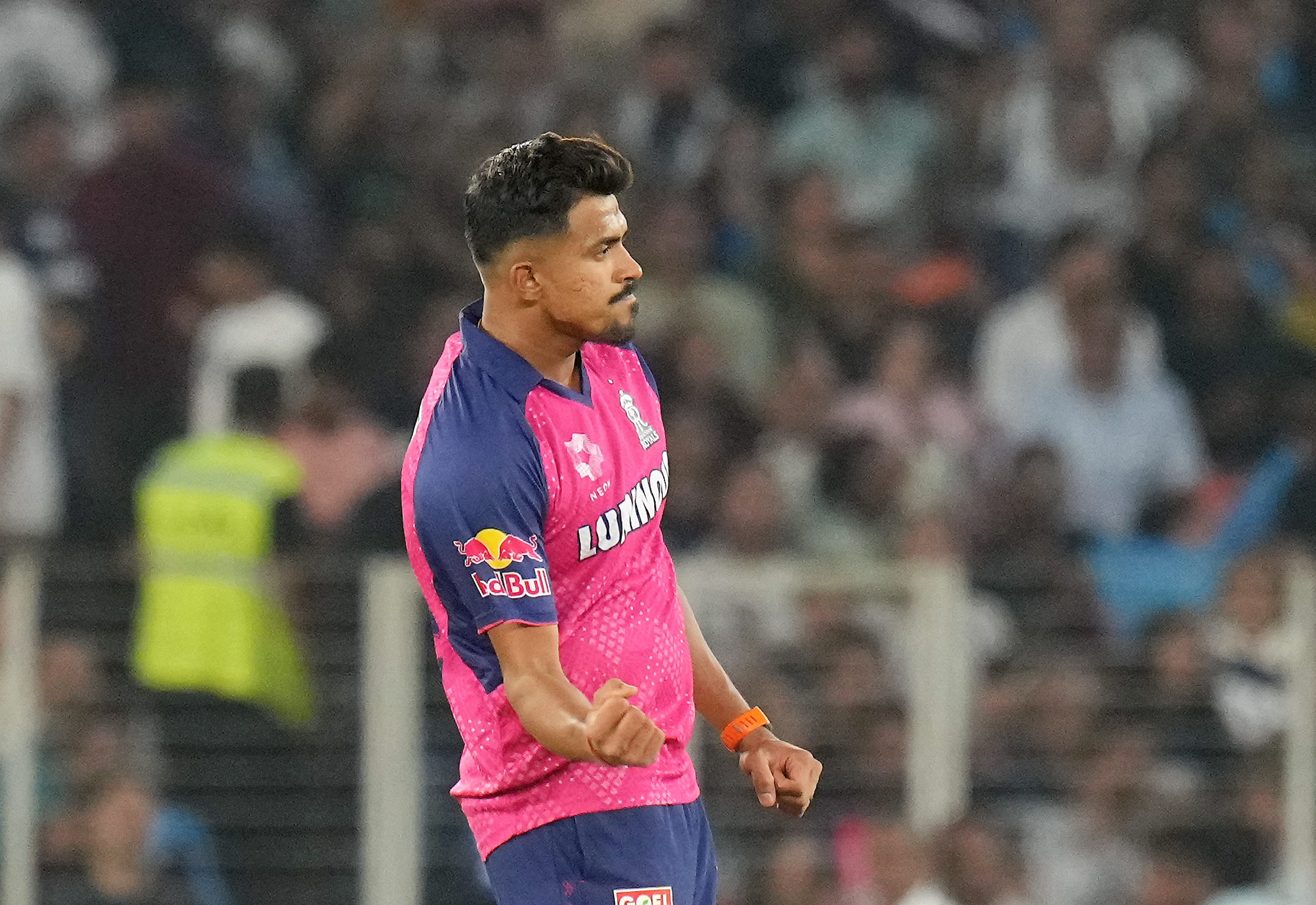 Ahmedabad: Rajasthan Royals’ Maheesh Theekshana celebrates the wicket of Gujarat Titans� M Shahrukh Khan during an Indian Premier League (IPL) 2025 T20 cricket match between Gujarat Titans and Rajasthan Royals, at the Narendra Modi Stadium, in Ahmedabad, Wednesday, April 9, 2025. (PTI Photo/Arun Sharma) (PTI04_09_2025_000479B)