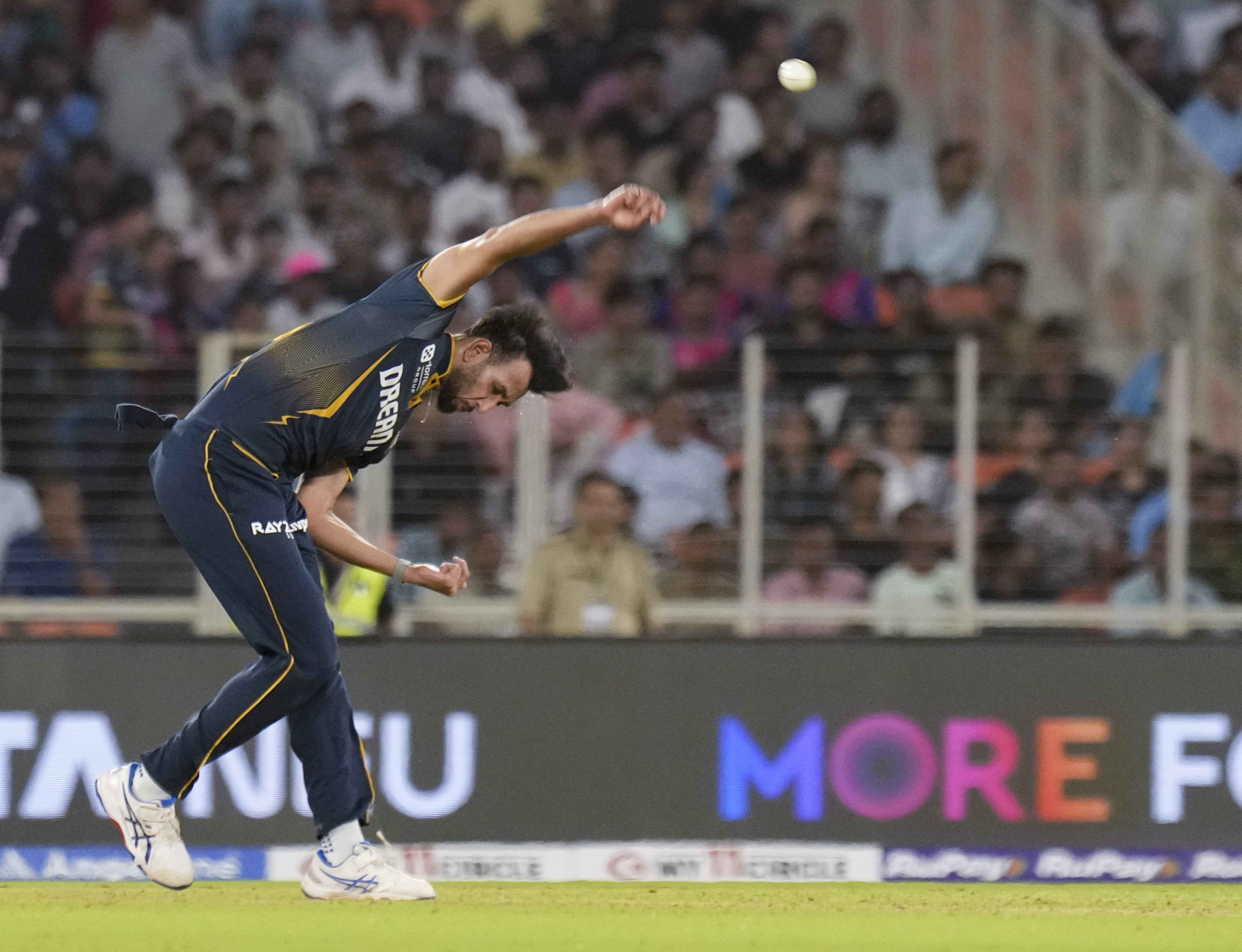 Ahmedabad: Gujarat Titans’ Prasidh Krishna bowls a delivery during an Indian Premier League (IPL) 2025 T20 cricket match between Gujarat Titans and Rajasthan Royals, at the Narendra Modi Stadium, in Ahmedabad, Wednesday, April 9, 2025. (PTI Photo/Arun Sharma) (PTI04_09_2025_000612B)