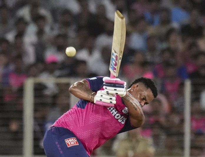 Ahmedabad: Rajasthan Royals’ Shimron Hetmyer plays a shot during an Indian Premier League (IPL) 2025 T20 cricket match between Gujarat Titans and Rajasthan Royals, at the Narendra Modi Stadium, in Ahmedabad, Wednesday, April 9, 2025. (PTI Photo/Arun Sharma) (PTI04_09_2025_000594B)