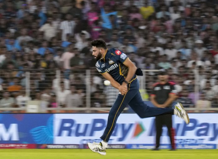 Ahmedabad: Gujarat Titans’ Mohammed Siraj during an Indian Premier League (IPL) 2025 T20 cricket match between Gujarat Titans and Rajasthan Royals, at the Narendra Modi Stadium, in Ahmedabad, Wednesday, April 9, 2025. (PTI Photo/Arun Sharma) (PTI04_09_2025_000579B)