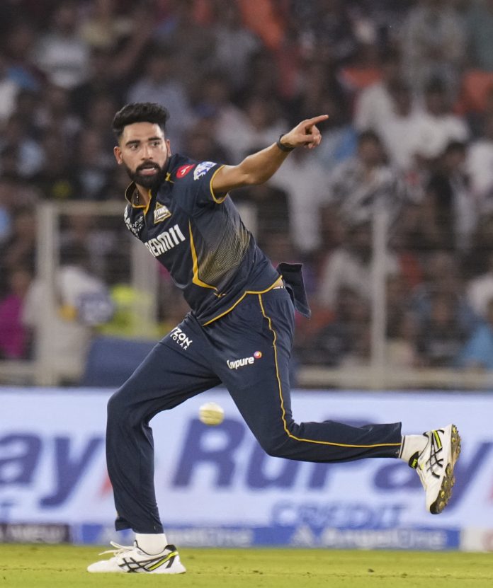 Ahmedabad: Gujarat Titans’ Mohammed Siraj during an Indian Premier League (IPL) 2025 T20 cricket match between Gujarat Titans and Rajasthan Royals, at the Narendra Modi Stadium, in Ahmedabad, Wednesday, April 9, 2025. (PTI Photo/Arun Sharma) (PTI04_09_2025_000617B)