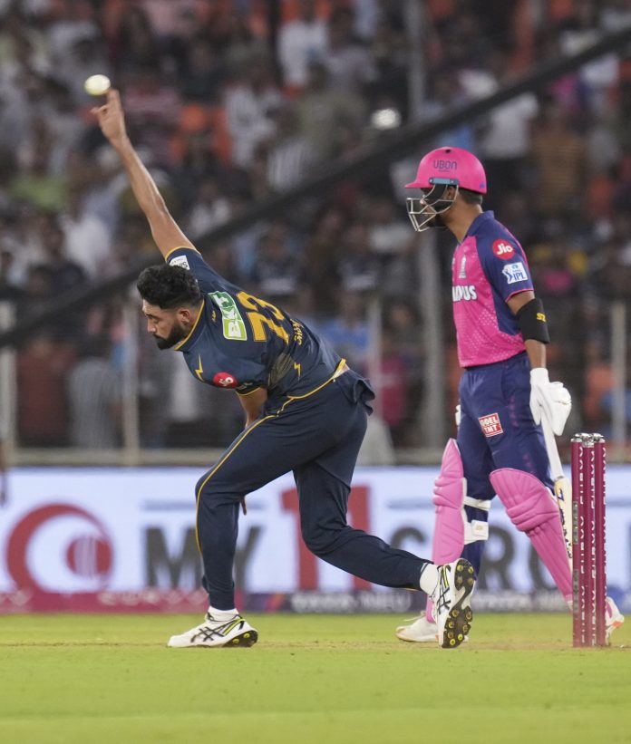 Ahmedabad: Gujarat Titans’ Mohammed Siraj bowls a delivery during an Indian Premier League (IPL) 2025 T20 cricket match between Gujarat Titans and Rajasthan Royals, at the Narendra Modi Stadium, in Ahmedabad, Wednesday, April 9, 2025. (PTI Photo/Arun Sharma) (PTI04_09_2025_000615B)