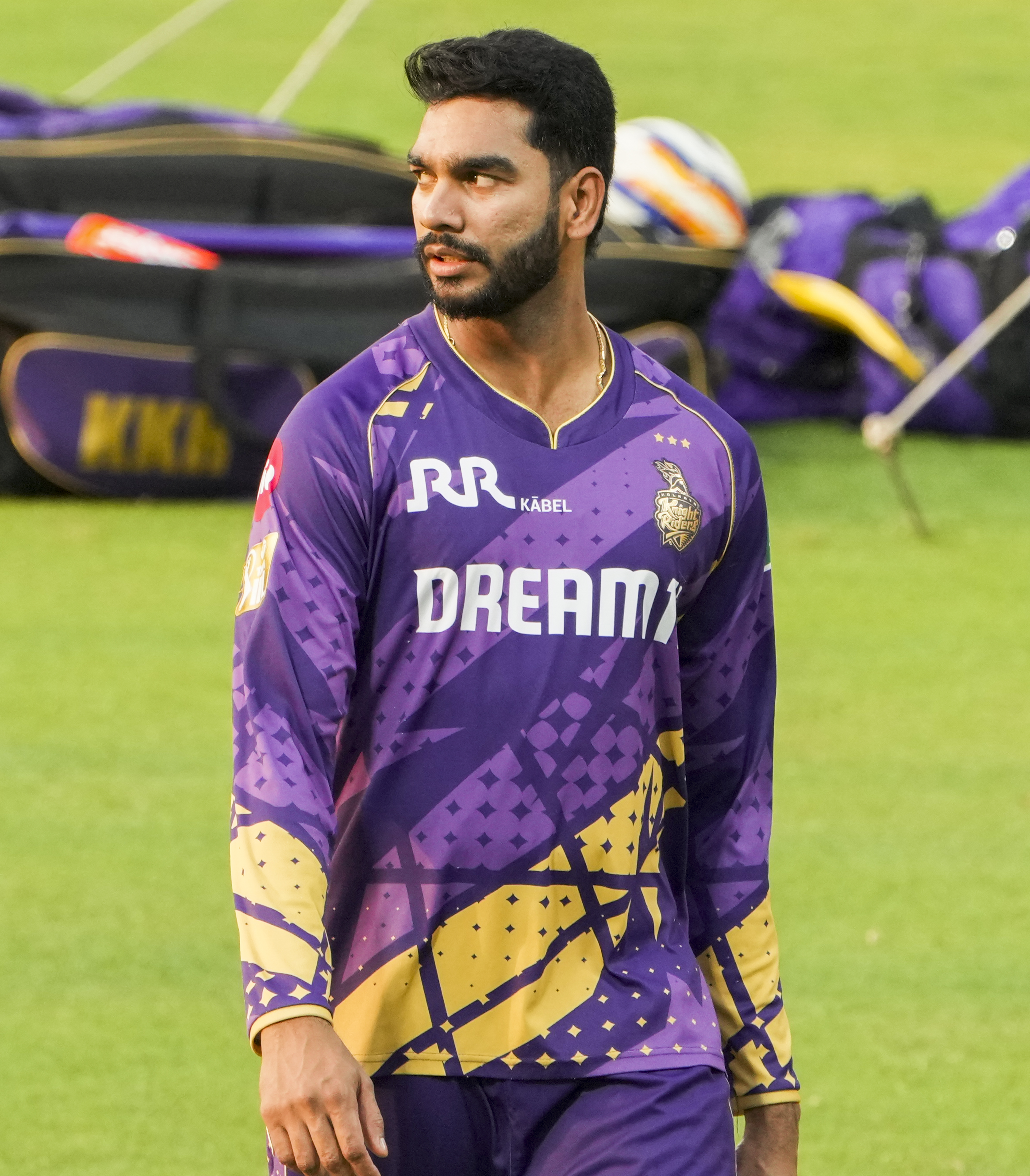 Kolkata: Kolkata Knight Riders’ Venkatesh Iyer during a practice session ahead of an Indian Premier League (IPL) 2025 cricket match between Lucknow Super Giants and Kolkata Knight Riders, at Eden Gardens in Kolkata, Monday, April 7, 2025. (PTI Photo/Swapan Mahapatra)(PTI04_07_2025_000333B)
