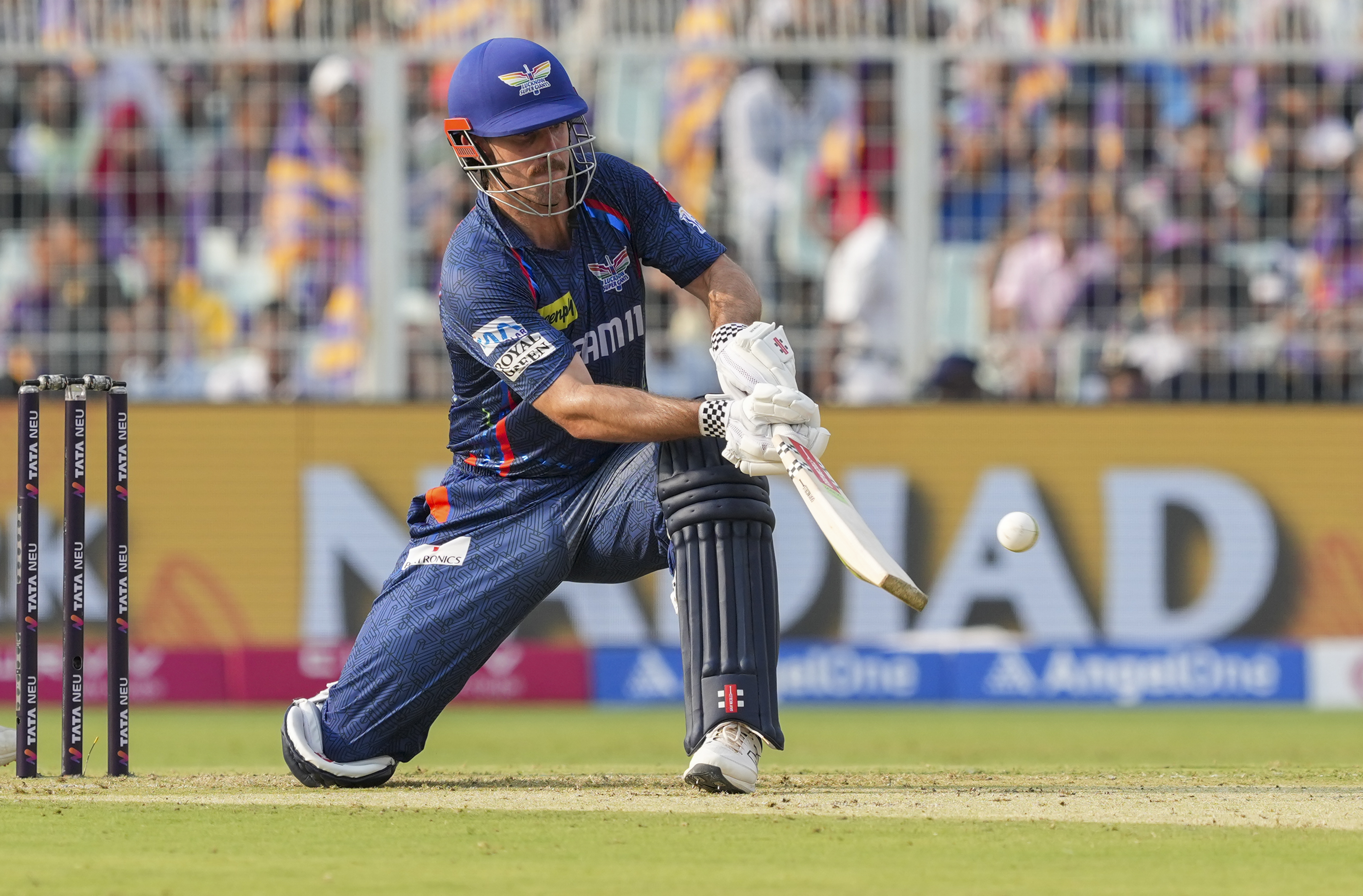 Kolkata: Lucknow Super Giants’ batter Mitchell Marsh plays a shot during the Indian Premier League (IPL) 2025 cricket match between Kolkata Knight Riders and Lucknow Super Giants, at Eden Gardens, in Kolkata, West Bengal, Tuesday, April 8, 2025. (PTI Photo/Swapan Mahapatra)(PTI04_08_2025_000253B)
