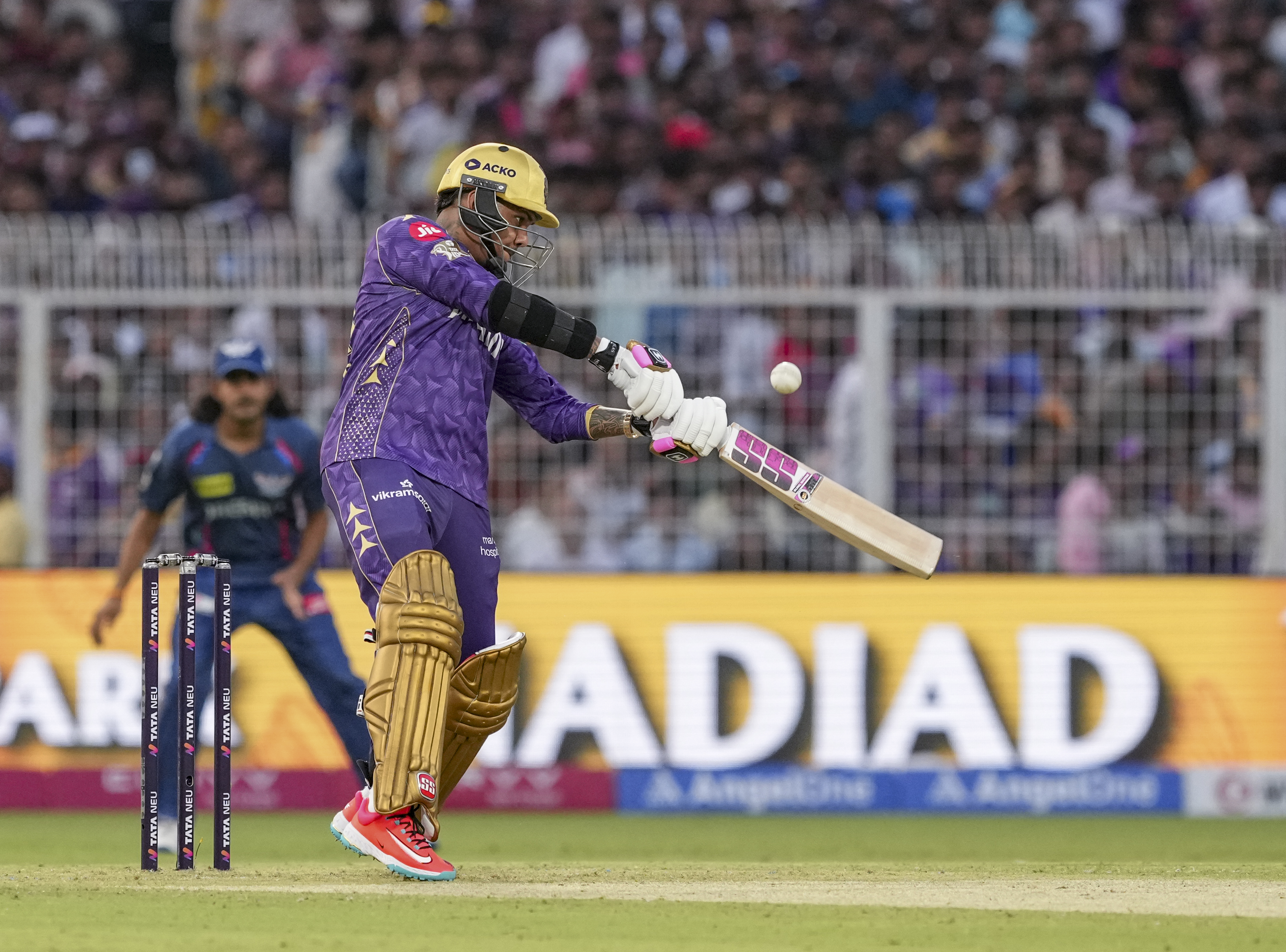 Kolkata: Kolkata Knight Riders’ batter Sunil Narine plays a shot during the Indian Premier League (IPL) 2025 cricket match between Kolkata Knight Riders and Lucknow Super Giants, at Eden Gardens, in Kolkata, West Bengal, Tuesday, April 8, 2025. (PTI Photo/Swapan Mahapatra)(PTI04_08_2025_000342B)