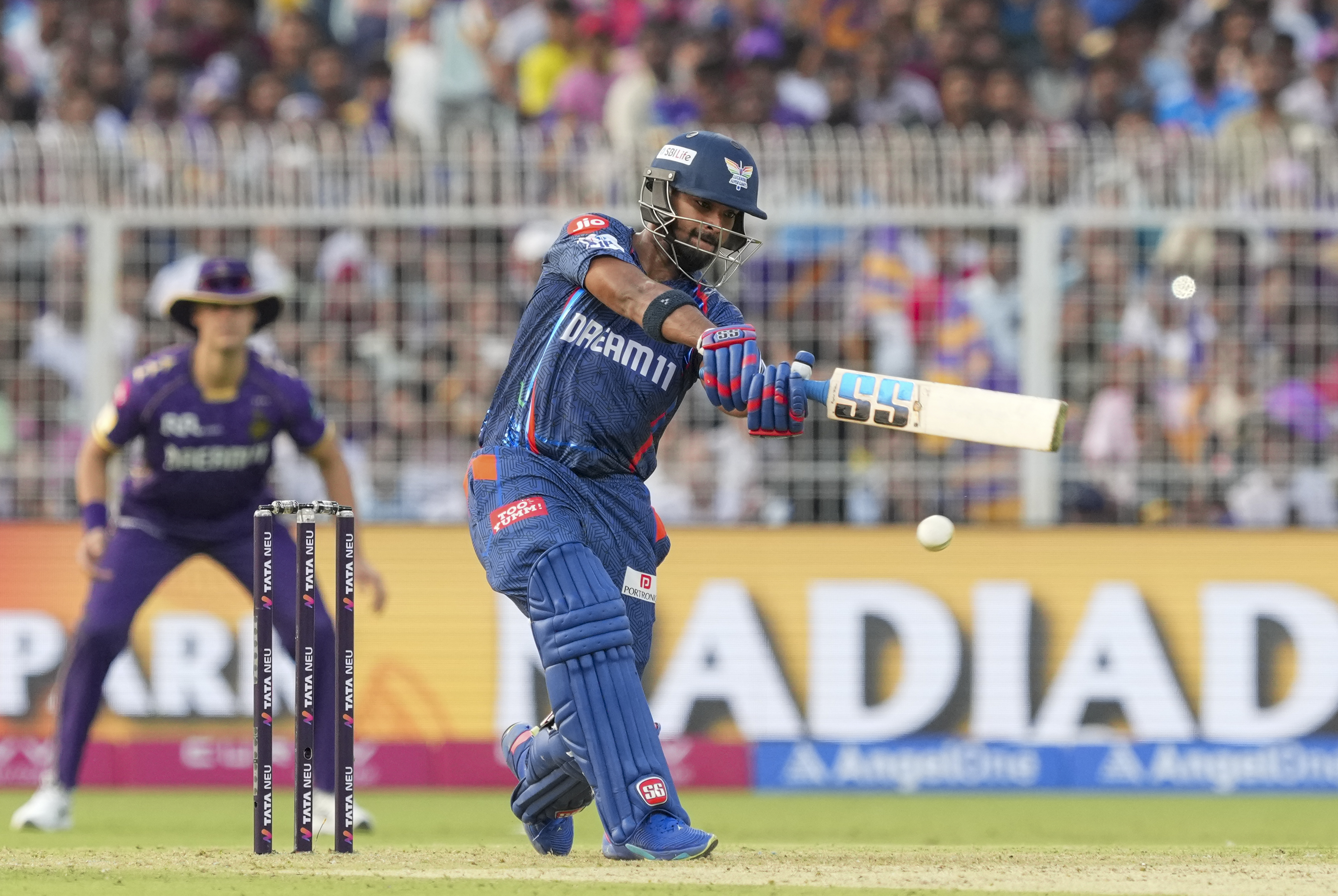Kolkata: Lucknow Super Giants’ batter Nicholas Pooran plays a shot during the Indian Premier League (IPL) 2025 cricket match between Kolkata Knight Riders and Lucknow Super Giants, at Eden Gardens, in Kolkata, West Bengal, Tuesday, April 8, 2025. (PTI Photo/Swapan Mahapatra)(PTI04_08_2025_000316B)