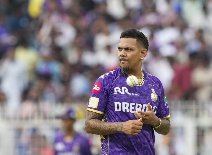Kolkata: Kolkata Knight Riders’ bowler Sunil Narine during the Indian Premier League (IPL) 2025 cricket match between Kolkata Knight Riders and Lucknow Super Giants, at Eden Gardens, in Kolkata, West Bengal, Tuesday, April 8, 2025. (PTI Photo/Swapan Mahapatra)(PTI04_08_2025_000299B)