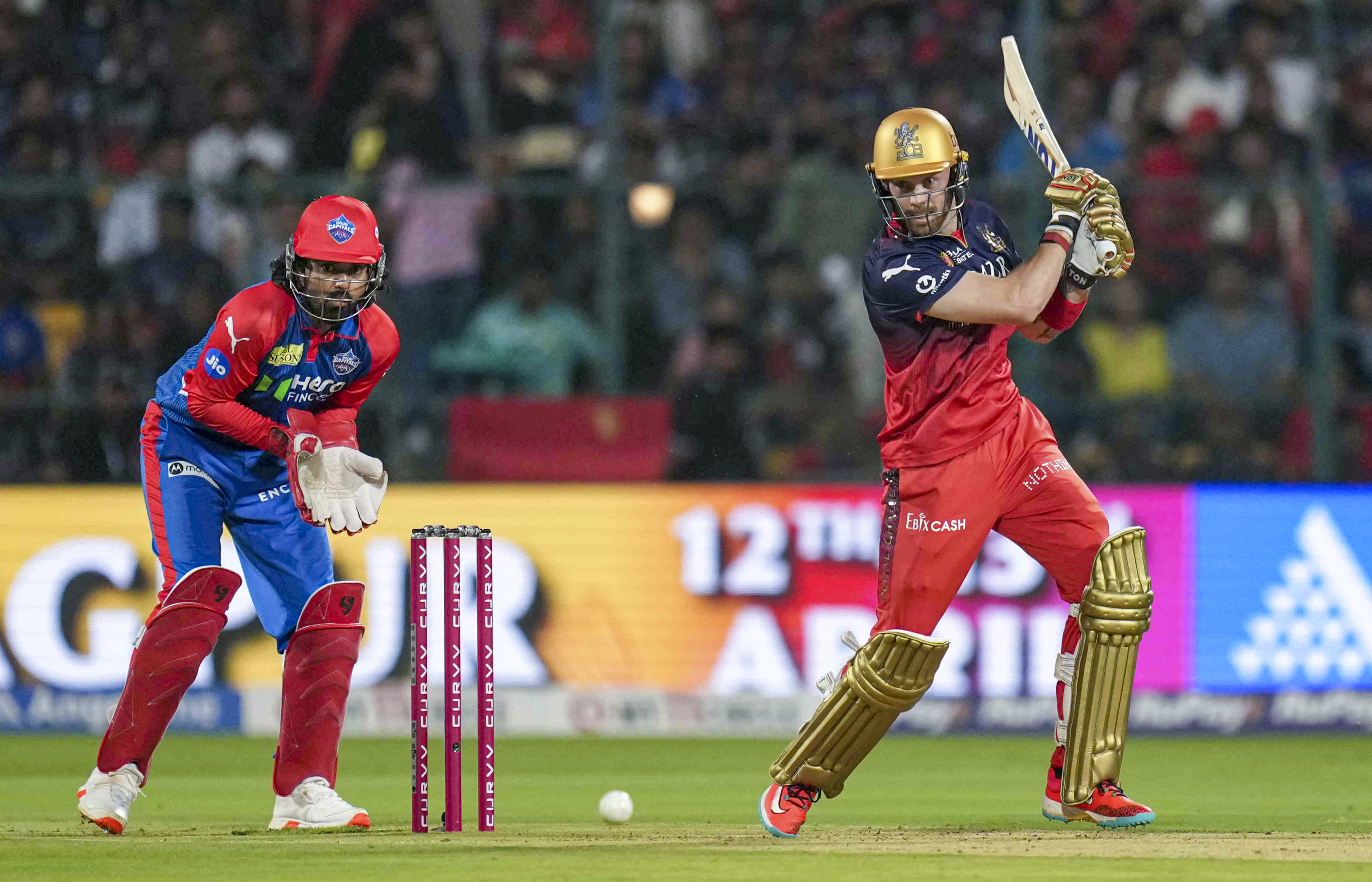 Bengaluru: Royal Challengers Bengaluru's Phil Salt plays a shot during an Indian Premier League (IPL) 2025 T20 cricket match between Royal Challengers Bengaluru and Delhi Capitals, at the M Chinnaswamy Stadium, in Bengaluru, Karnataka, Thursday, April 10, 2025. (PTI Photo/Shailendra Bhojak) (PTI04_10_2025_000304B) *** Local Caption ***