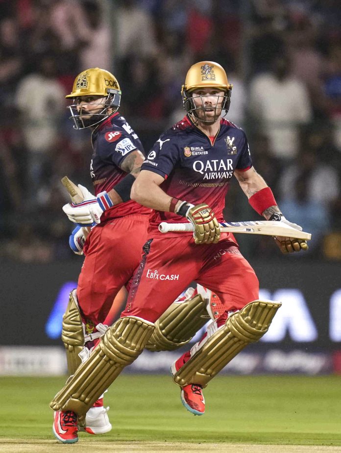 Bengaluru: Royal Challengers Bengaluru’s Virat Kohli and Phil Salt run between the wickets during an Indian Premier League (IPL) 2025 T20 cricket match between Royal Challengers Bengaluru and Delhi Capitals, at the M Chinnaswamy Stadium, in Bengaluru, Karnataka, Thursday, April 10, 2025. (PTI Photo/Shailendra Bhojak) (PTI04_10_2025_000295B) *** Local Caption ***