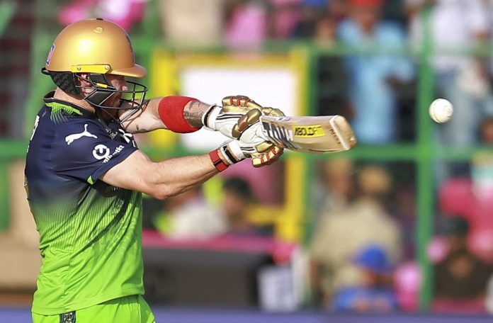 Jaipur: Royal Challengers Bengaluru�s Phil Salt plays a shot during the Indian Premier League (IPL) 2025 T20 cricket match between Rajasthan Royals and Royal Challengers Bengaluru, at Sawai Mansingh Stadium, in Jaipur, Sunday, April 13, 2025. (PTI Photo) (PTI04_13_2025_000255B)