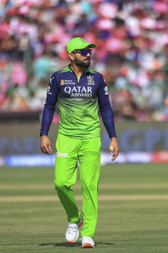 Jaipur: Royal Challengers Bengaluru’s Virat Kohli during the Indian Premier League (IPL) 2025 cricket match between Rajasthan Royals and Royal Challengers Bengaluru, at Sawai Mansingh Stadium, in Jaipur, Sunday, April 13, 2025. (PTI Photo)(PTI04_13_2025_000193B)