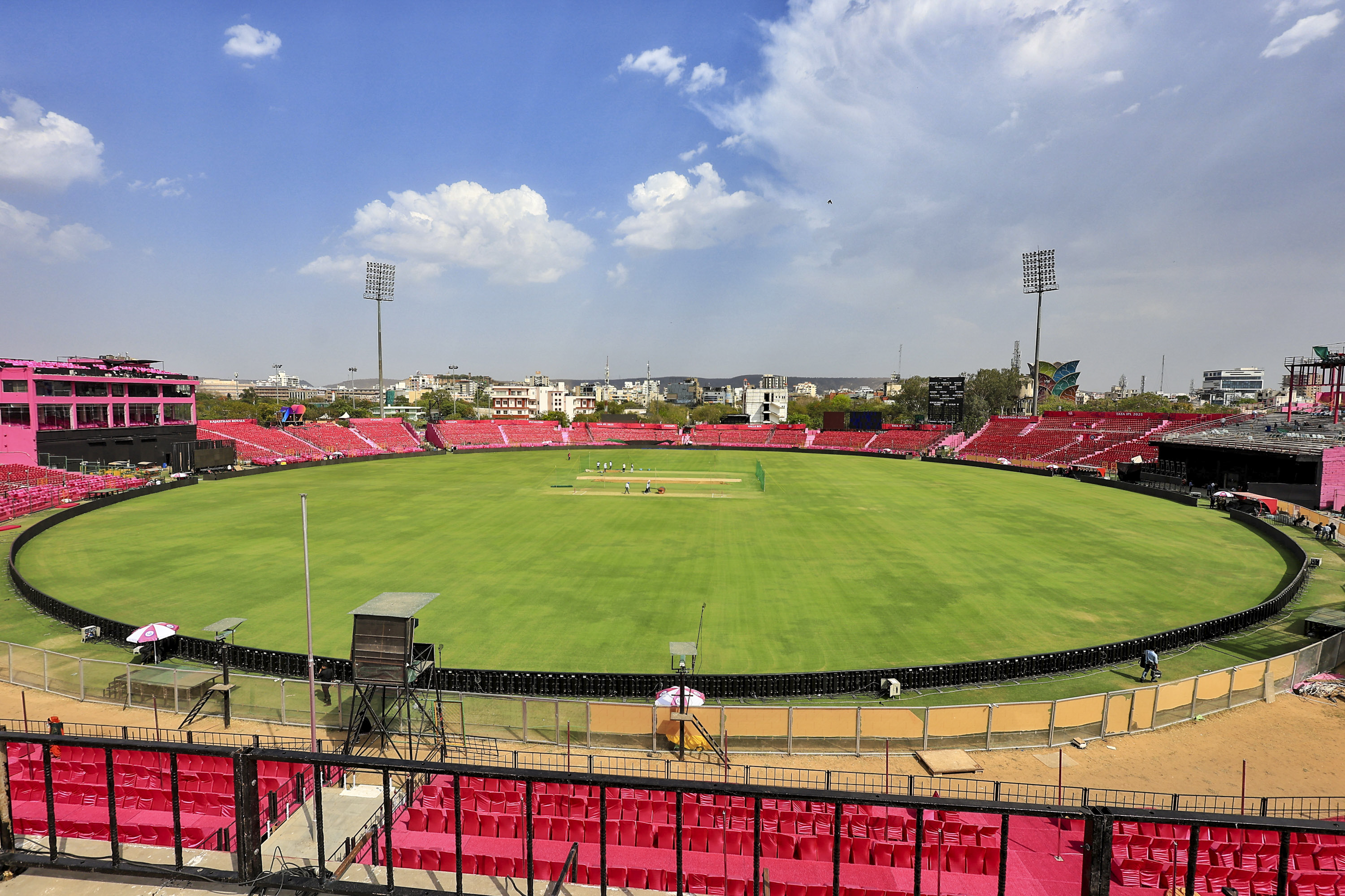 Jaipur: Preparations underway ahead of an Indian Premier League (IPL) 2025 T20 cricket match between Rajasthan Royals and Royal Challengers Bangaluru, at Sawai Mansingh Stadium, in Jaipur, Friday, April 11, 2025. (PTI Photo) (PTI04_11_2025_000268B) *** Local Caption ***