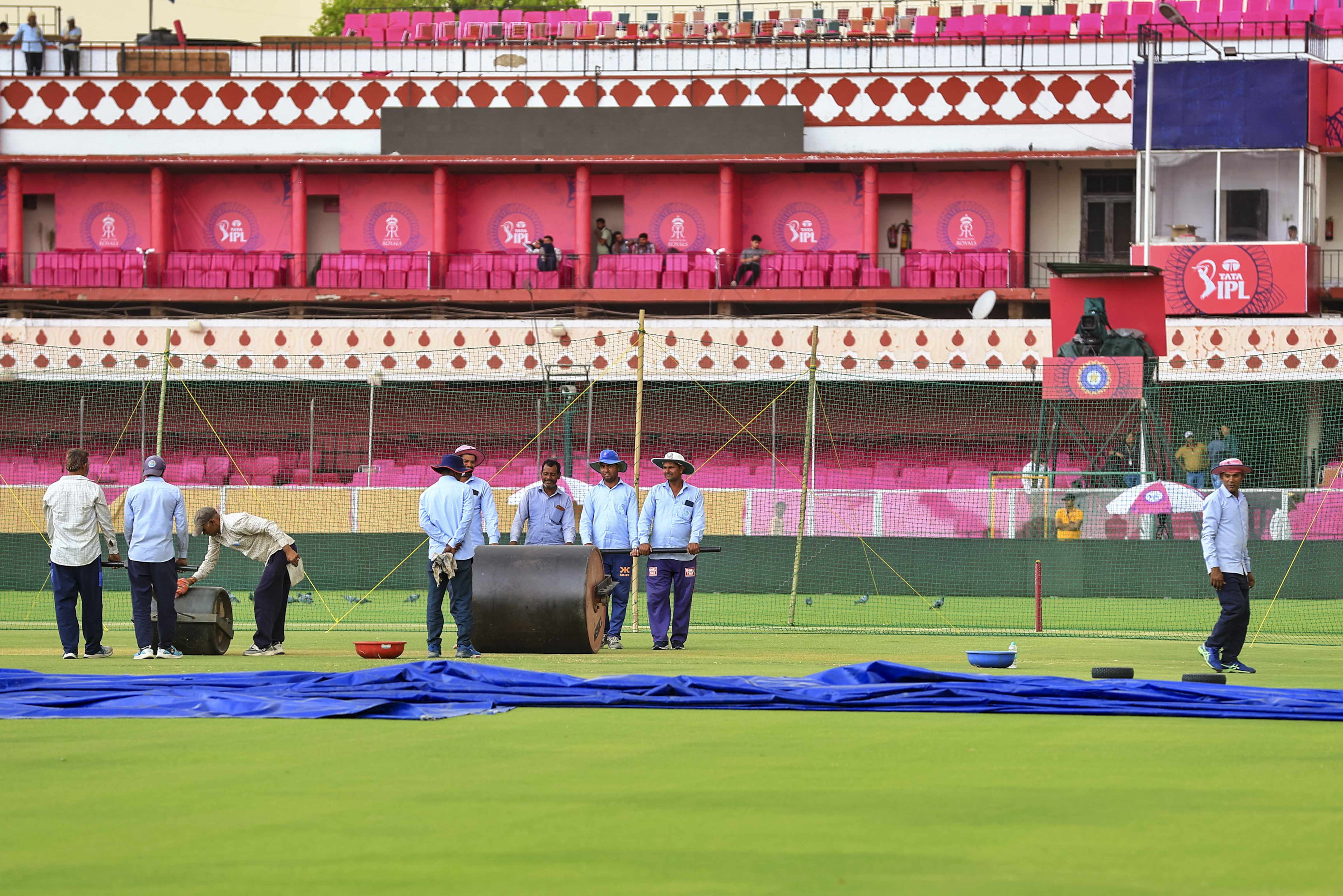 Jaipur: Preparations underway ahead of an Indian Premier League (IPL) 2025 T20 cricket match between Rajasthan Royals and Royal Challengers Bangaluru, at Sawai Mansingh Stadium, in Jaipur, Friday, April 11, 2025. (PTI Photo) (PTI04_11_2025_000276B) *** Local Caption ***
