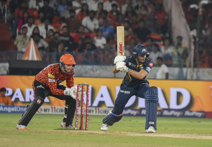 Hyderabad: Gujarat Titans’ batter Shubman Gill plays a shot during the Indian Premier League (IPL) 2025 match between Sunrisers Hyderabad and Gujarat Titans, at Rajiv Gandhi International Cricket Stadium, in Hyderabad, Sunday, April 6, 2025. (PTI Photo)(PTI04_06_2025_000433B)